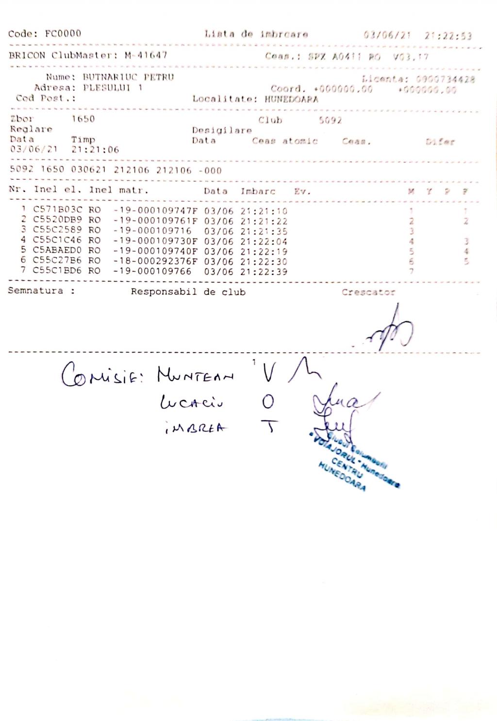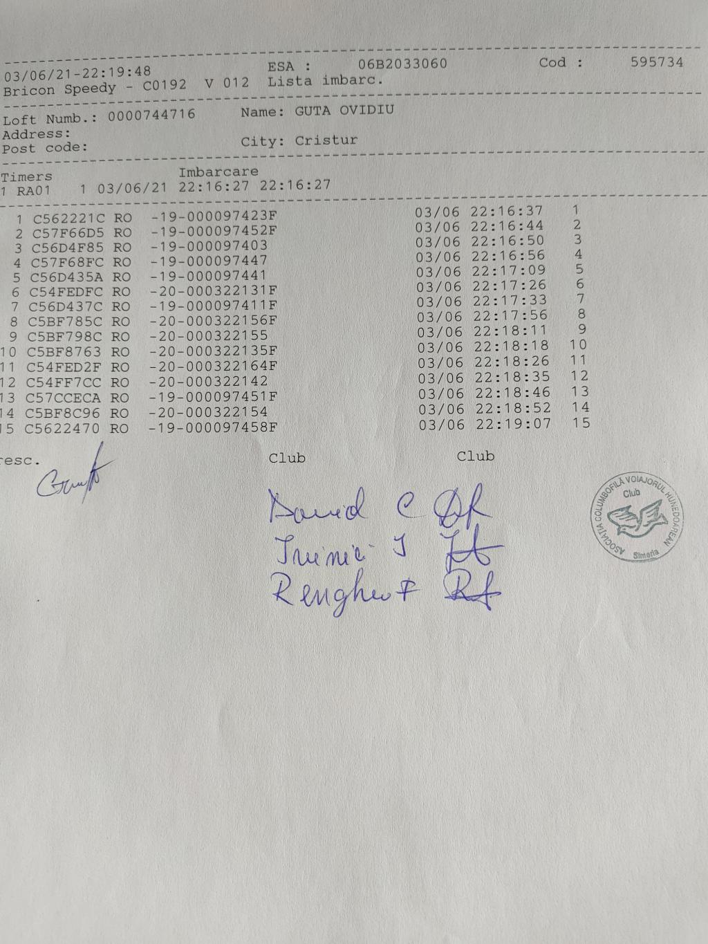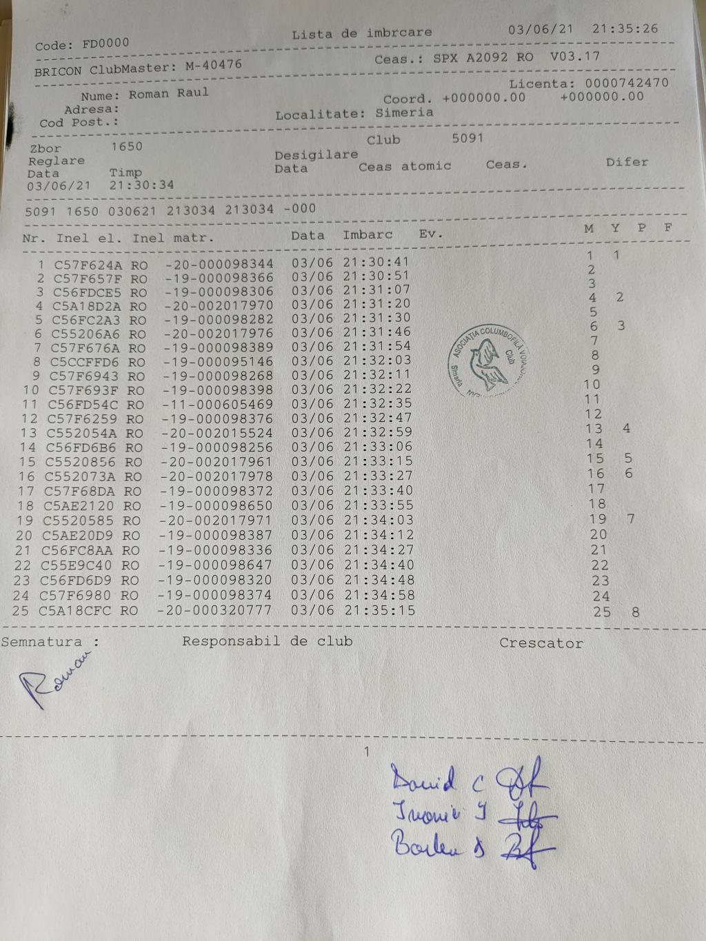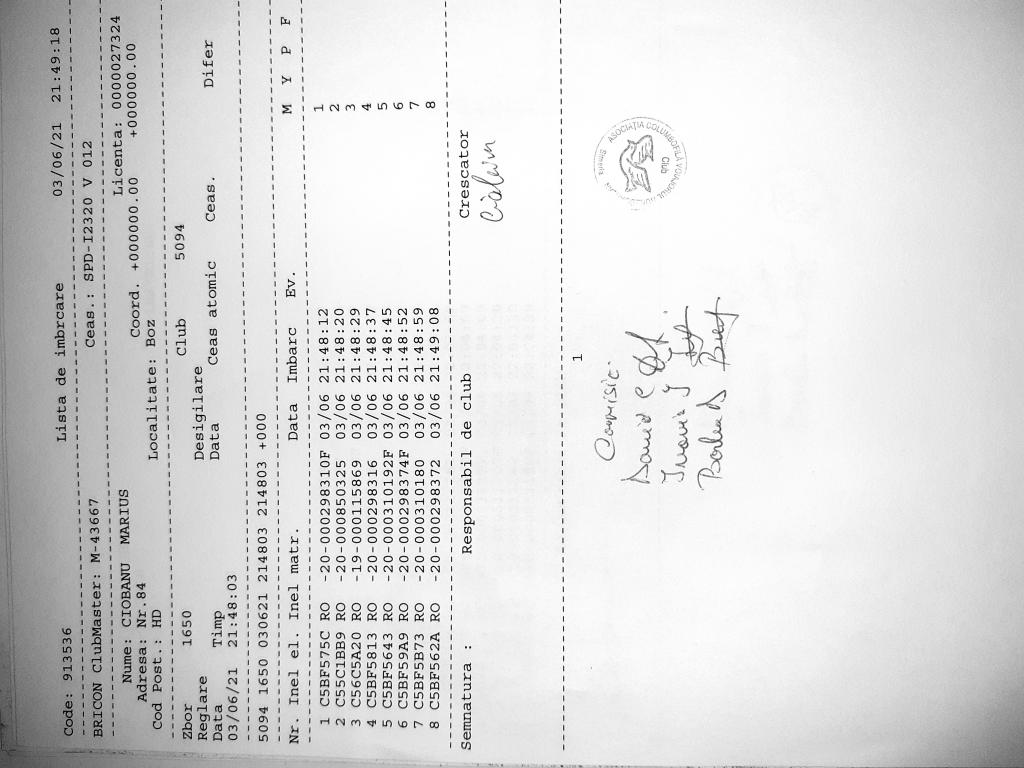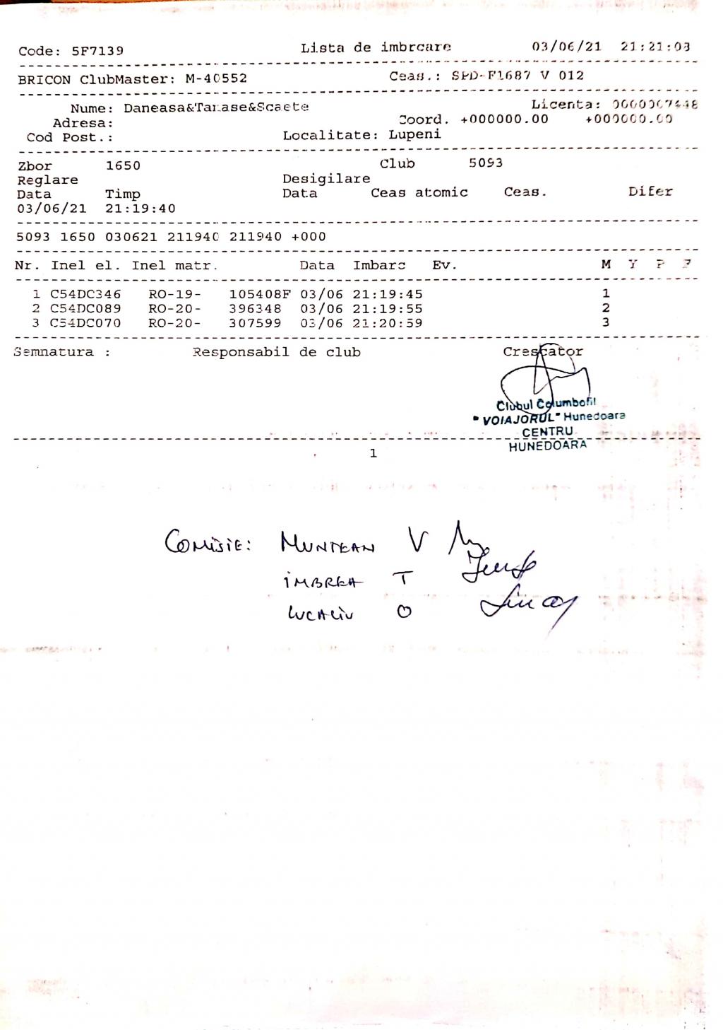| 1 | Almasan Vasile + Ionut + Alin | HD1009 | BRAD |