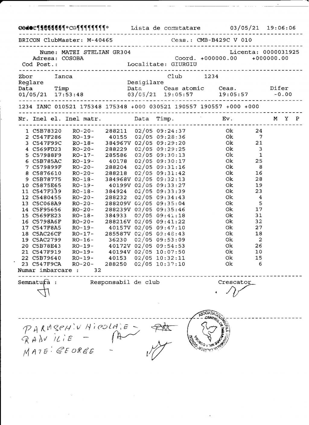 | 39 | Stoica Dtru Lucian | GR565 | Cosoba | [IMB P0] | [DES P0] [DES P1] |