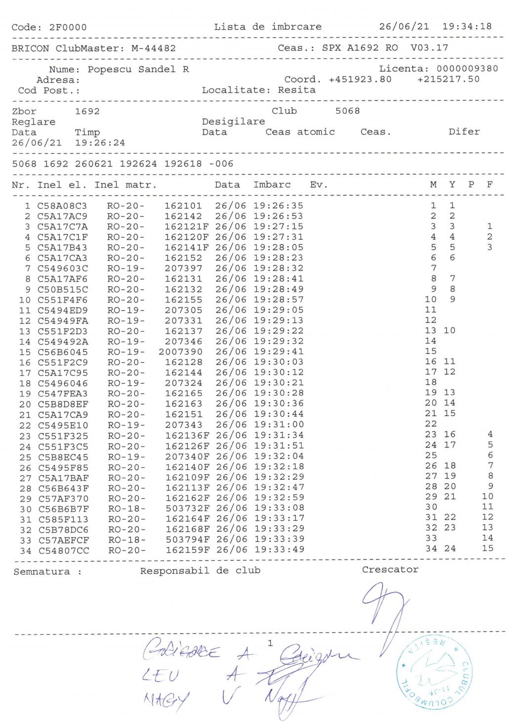 | 33 | Pienar Patriciu | CS817 | Bocsa | [IMB P0] | [DES P0] |