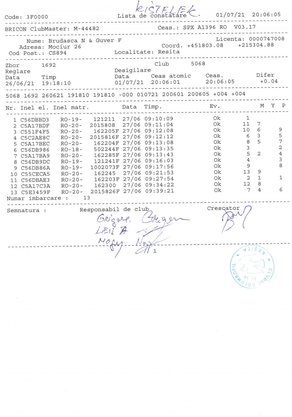 | 77 | Brudasca N & Guver F | CS894 | Resita | [IMB P0] | [DES P0] |