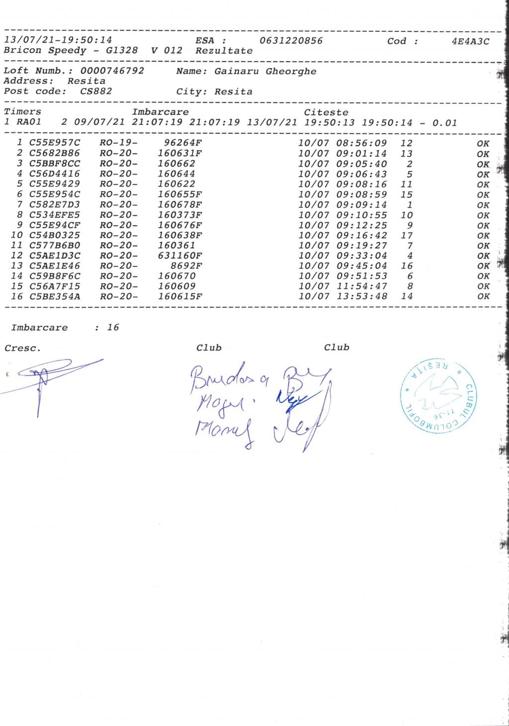 | 5 | Cata Ciprian | CS778 | Bocsa |
