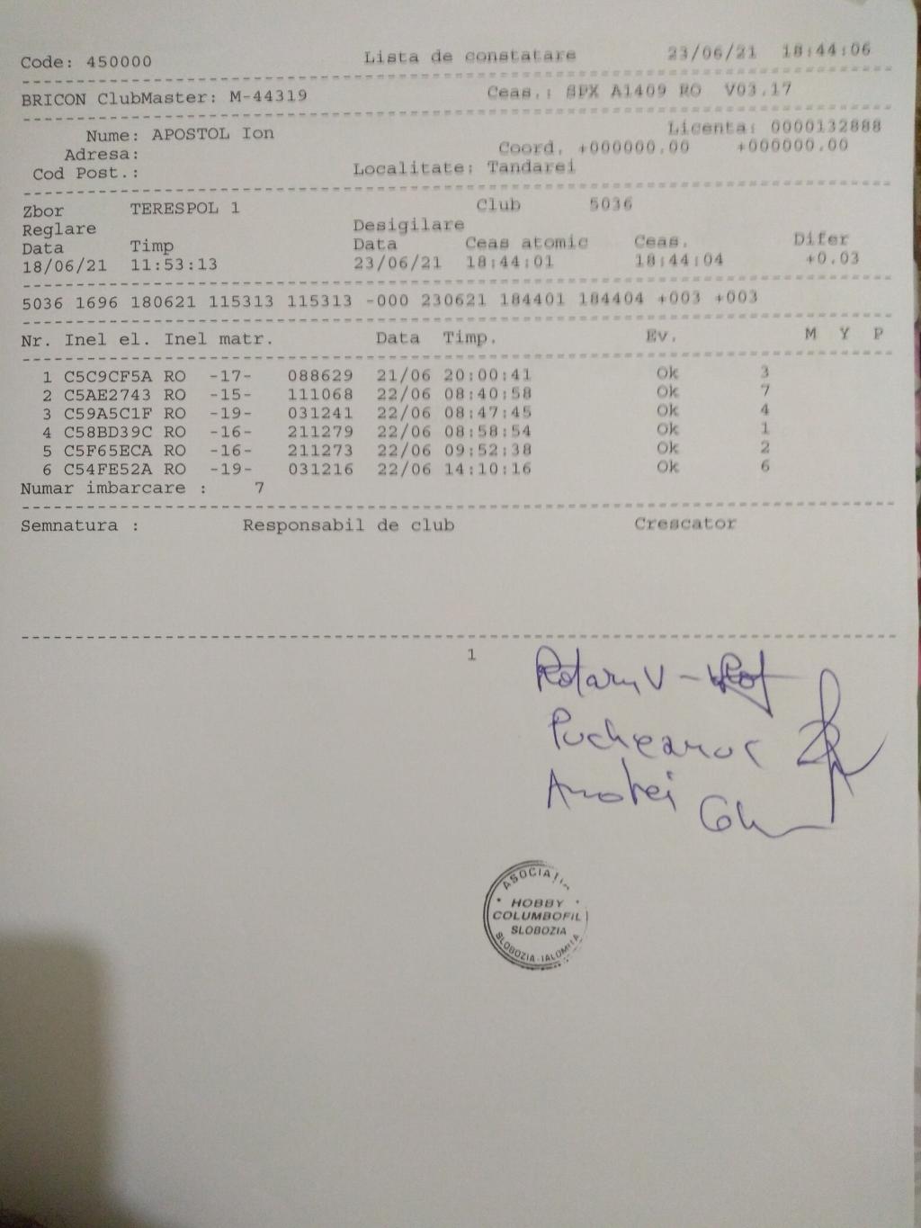 | 122 | Apostol Ion | IL376 | Slobozia | [IMB P0] | [DES P0] |