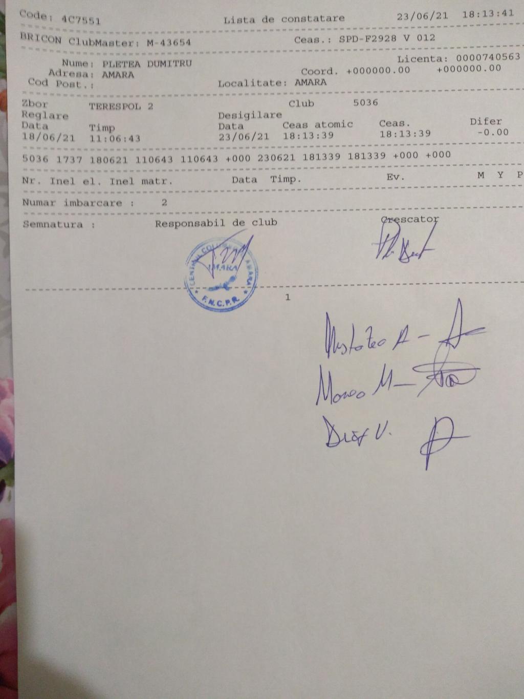 | 82 | Sibiceanu Vasilica Si Popa Onofrei | CT912 | Constanta 1 | [IMB P0] | [DES P0] |