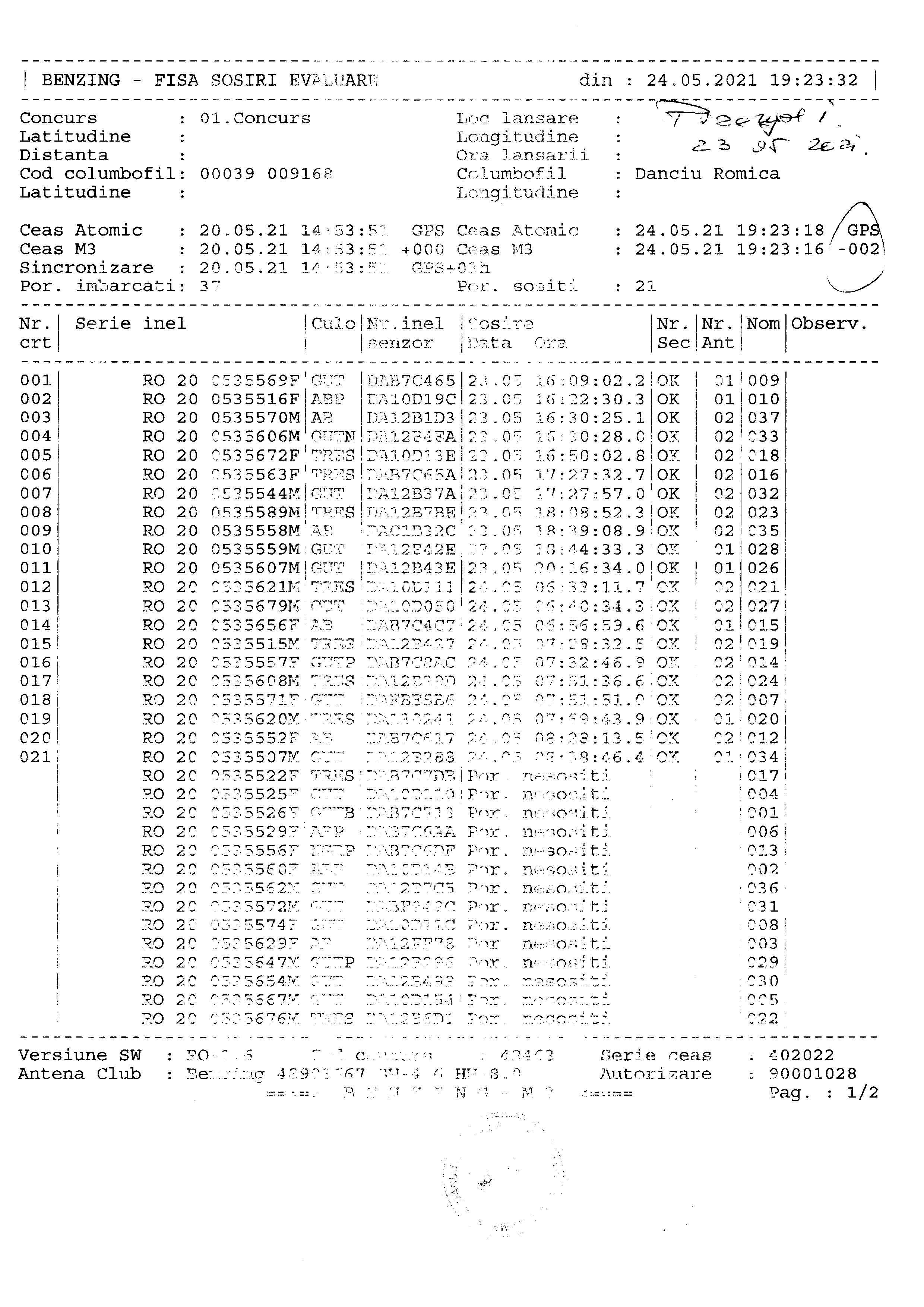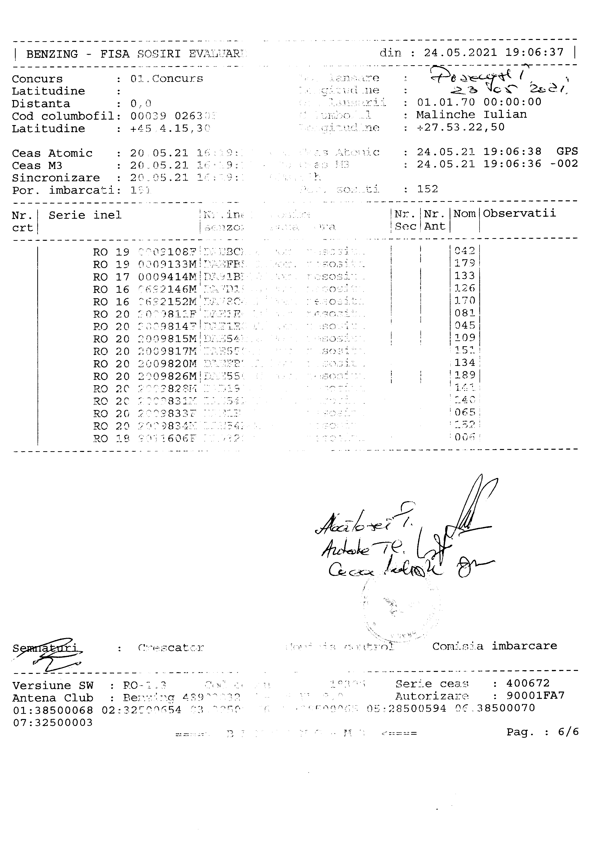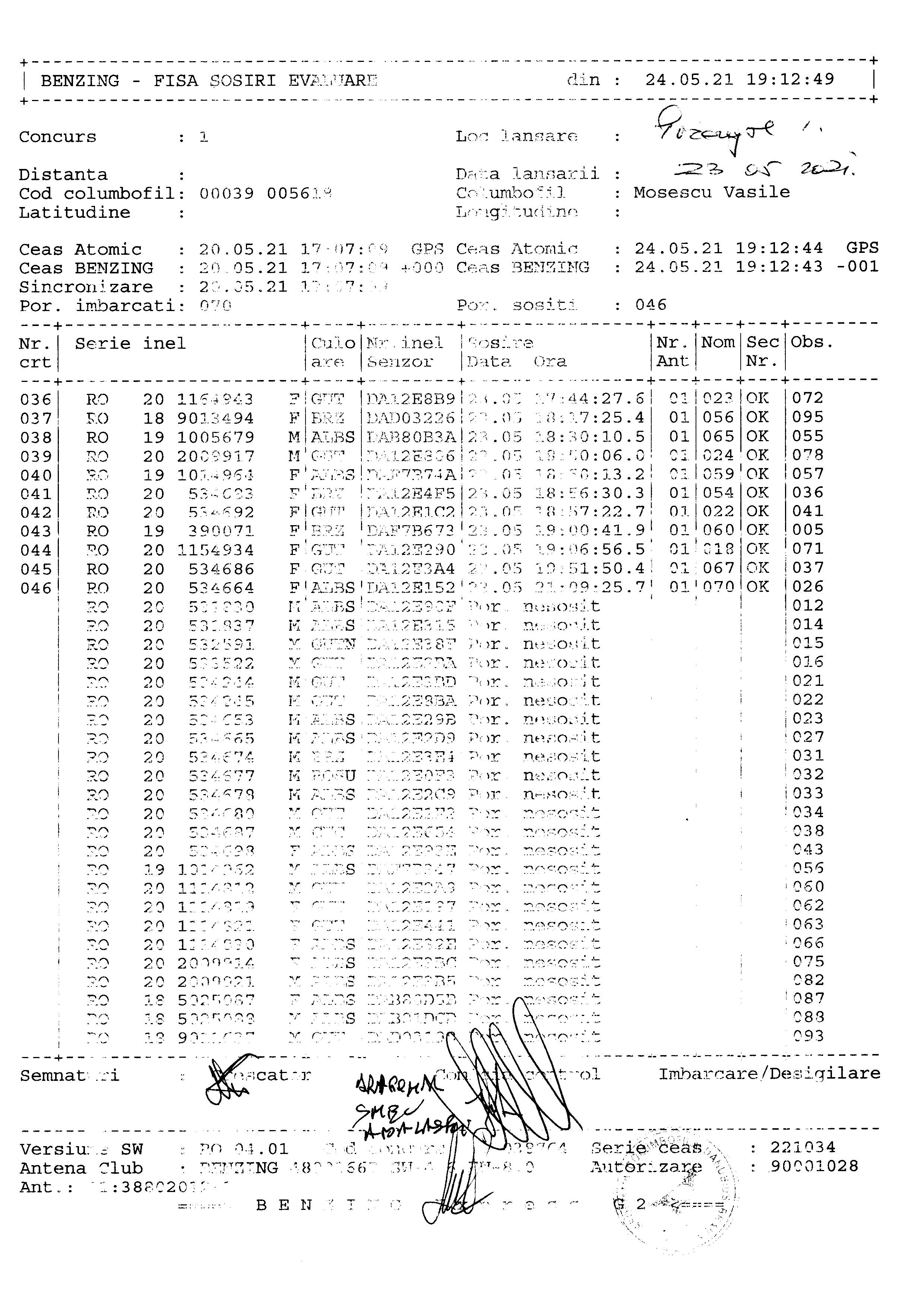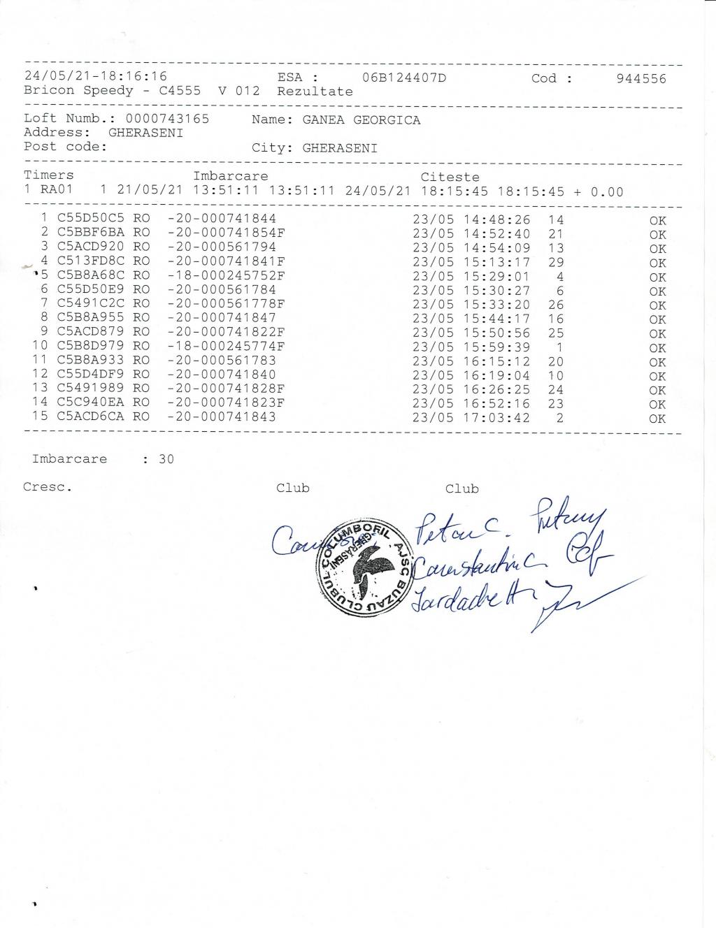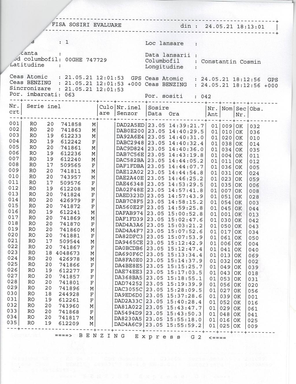 | 1 | Anghel Gheorghe | BZ9704 | Berca | [IMB P0] | [DES P0] |