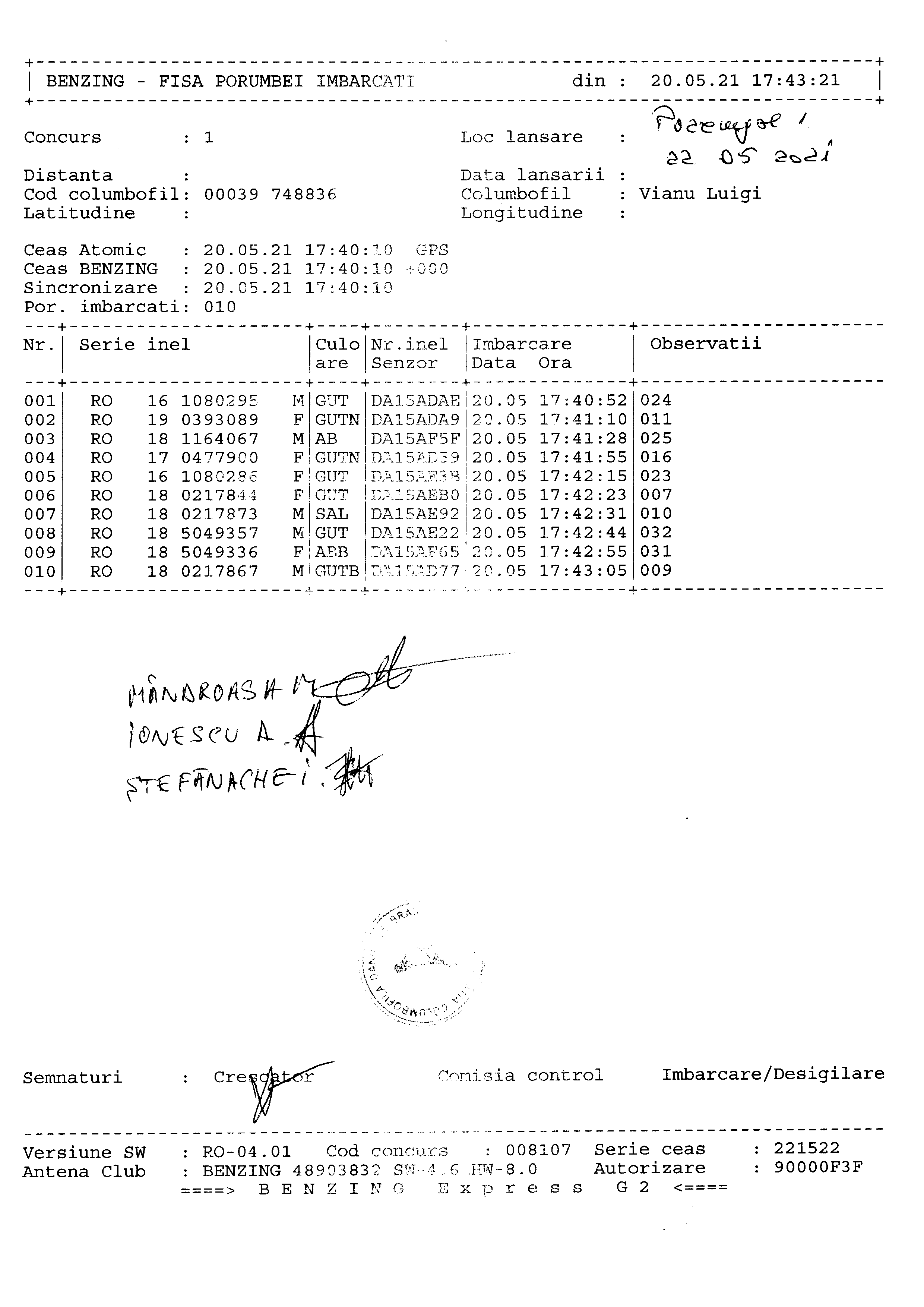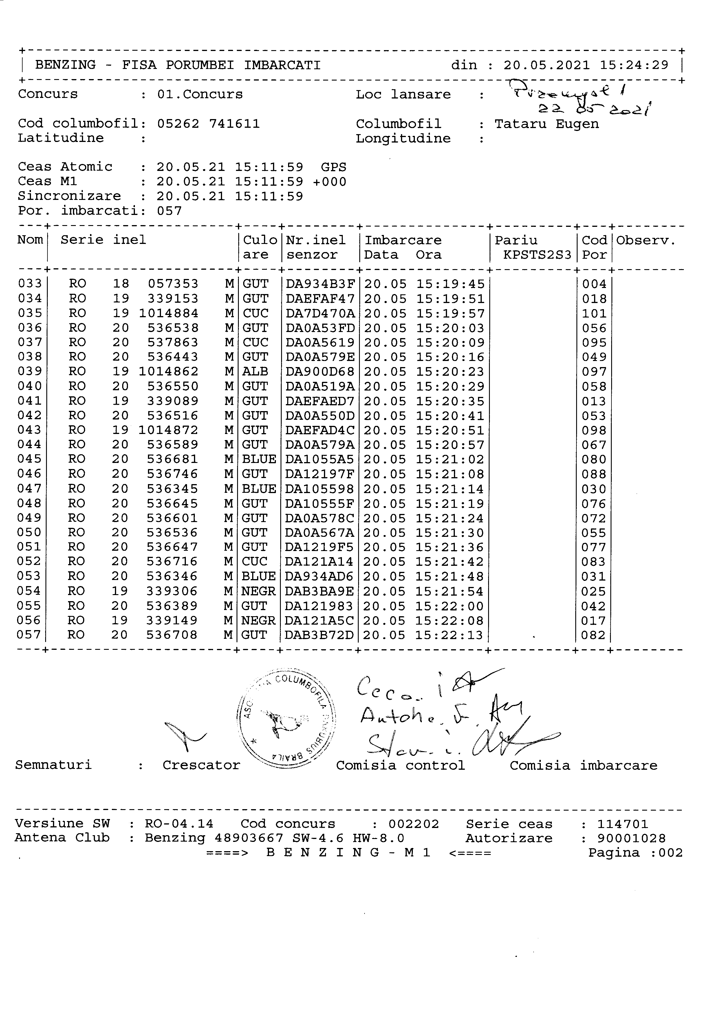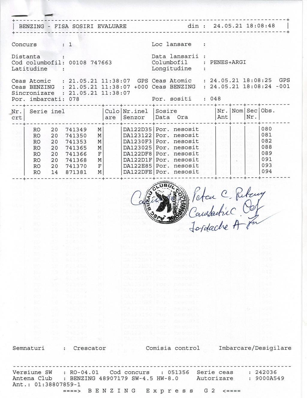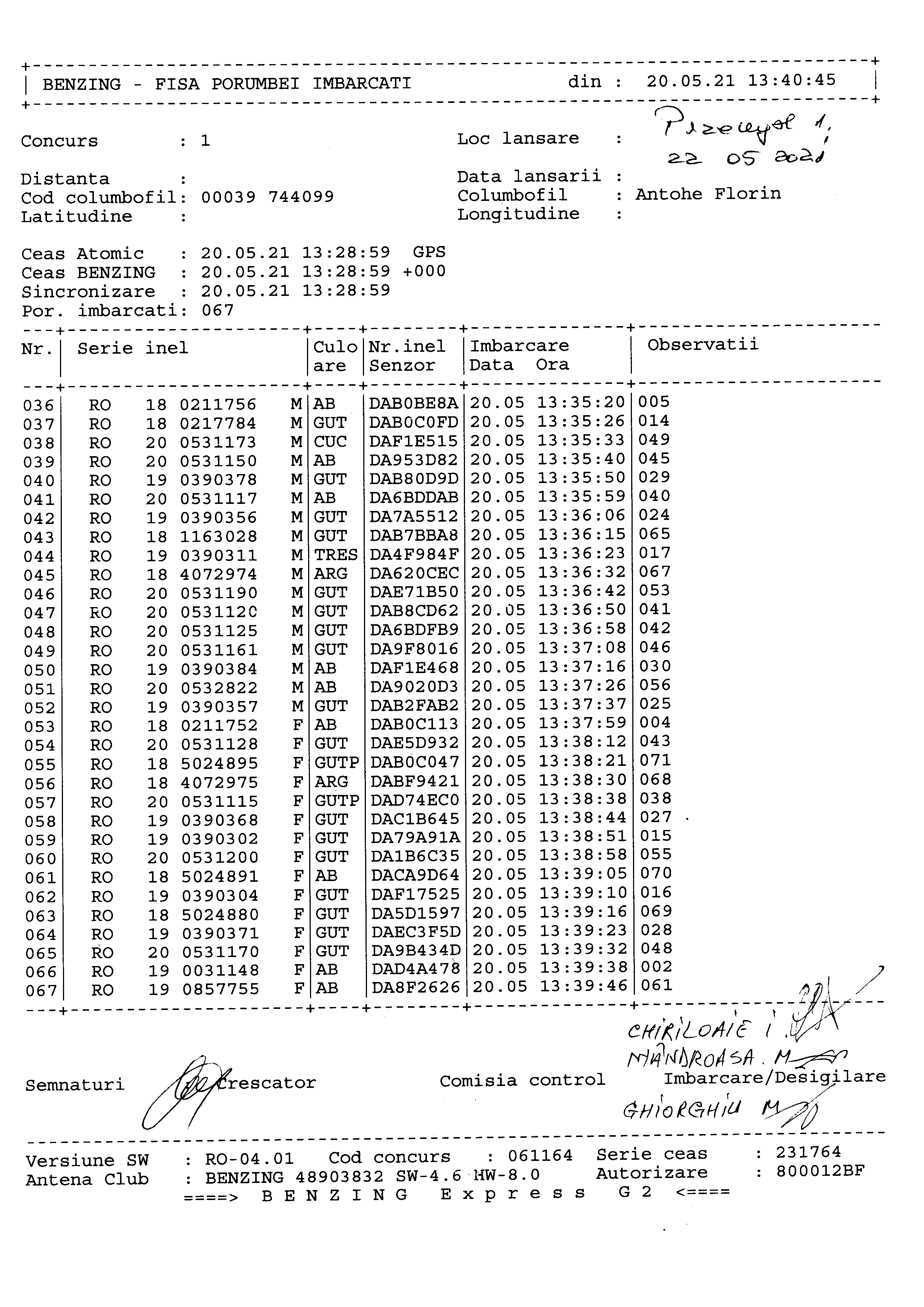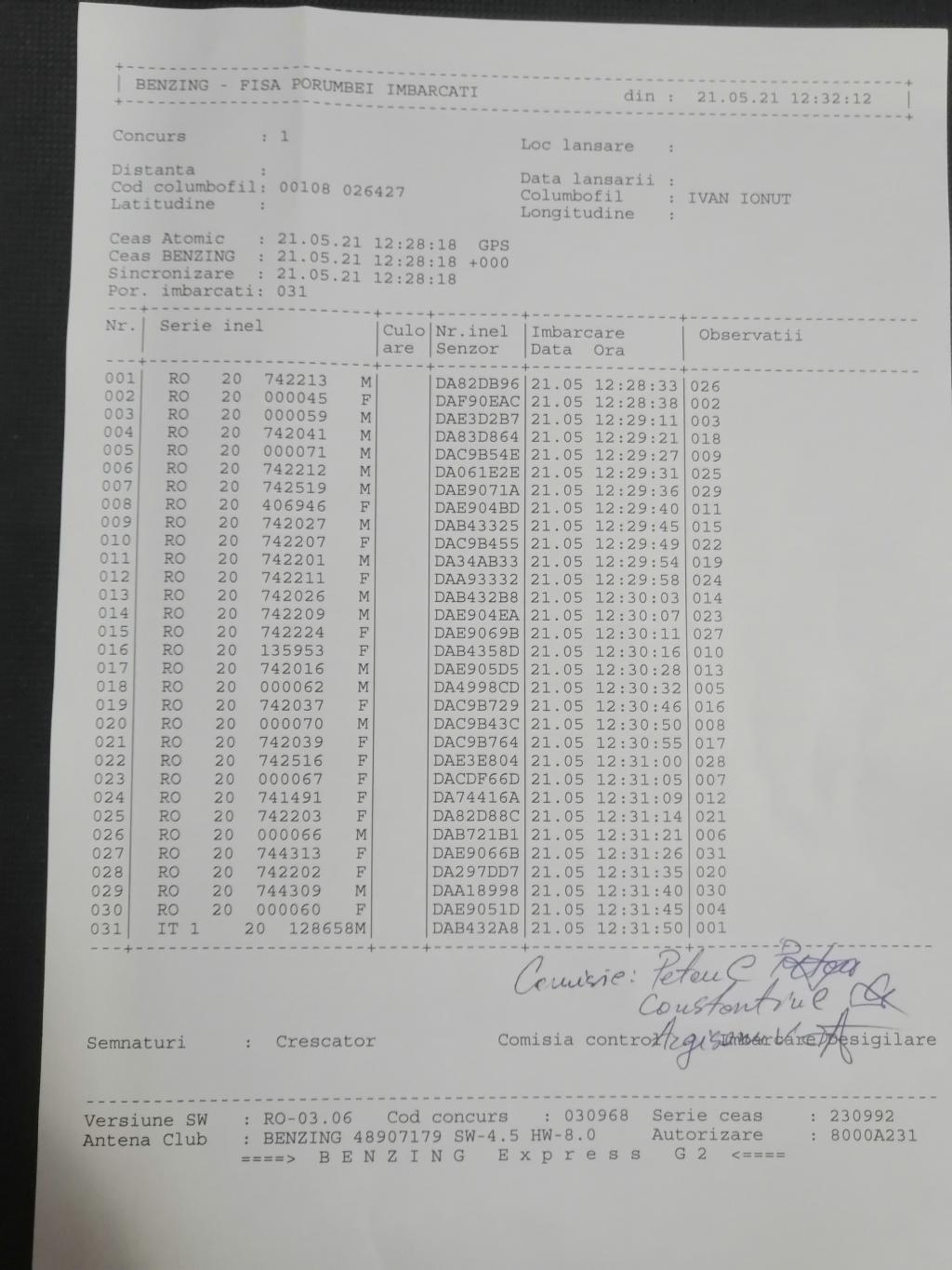 | 1 | Anghel Gheorghe | BZ9704 | Berca | [IMB P0] | [DES P0] |