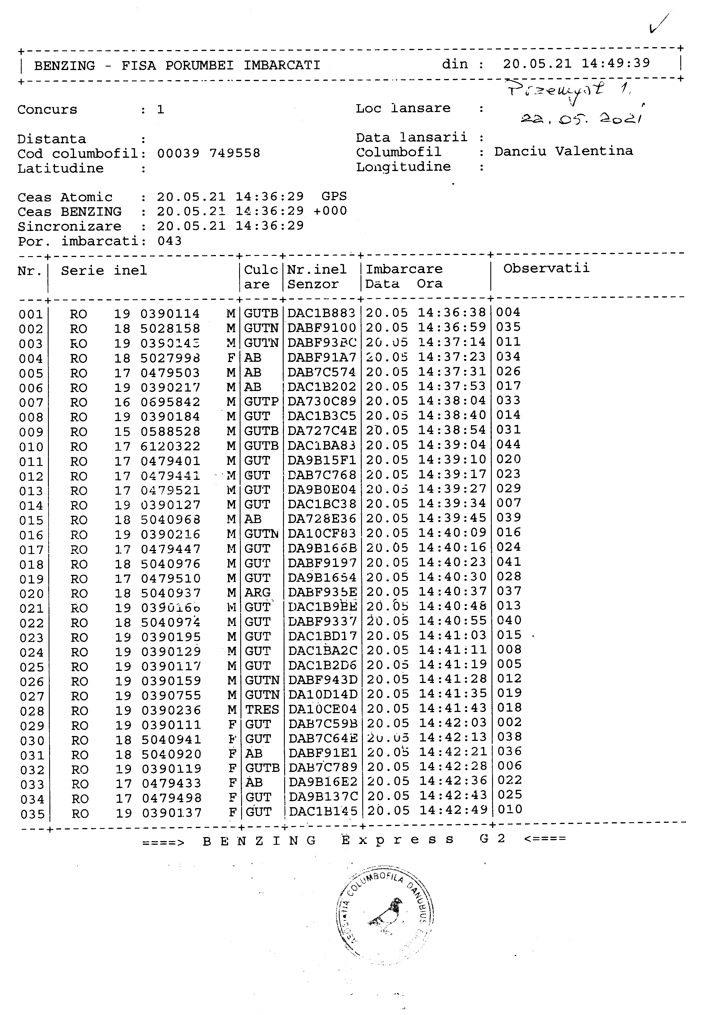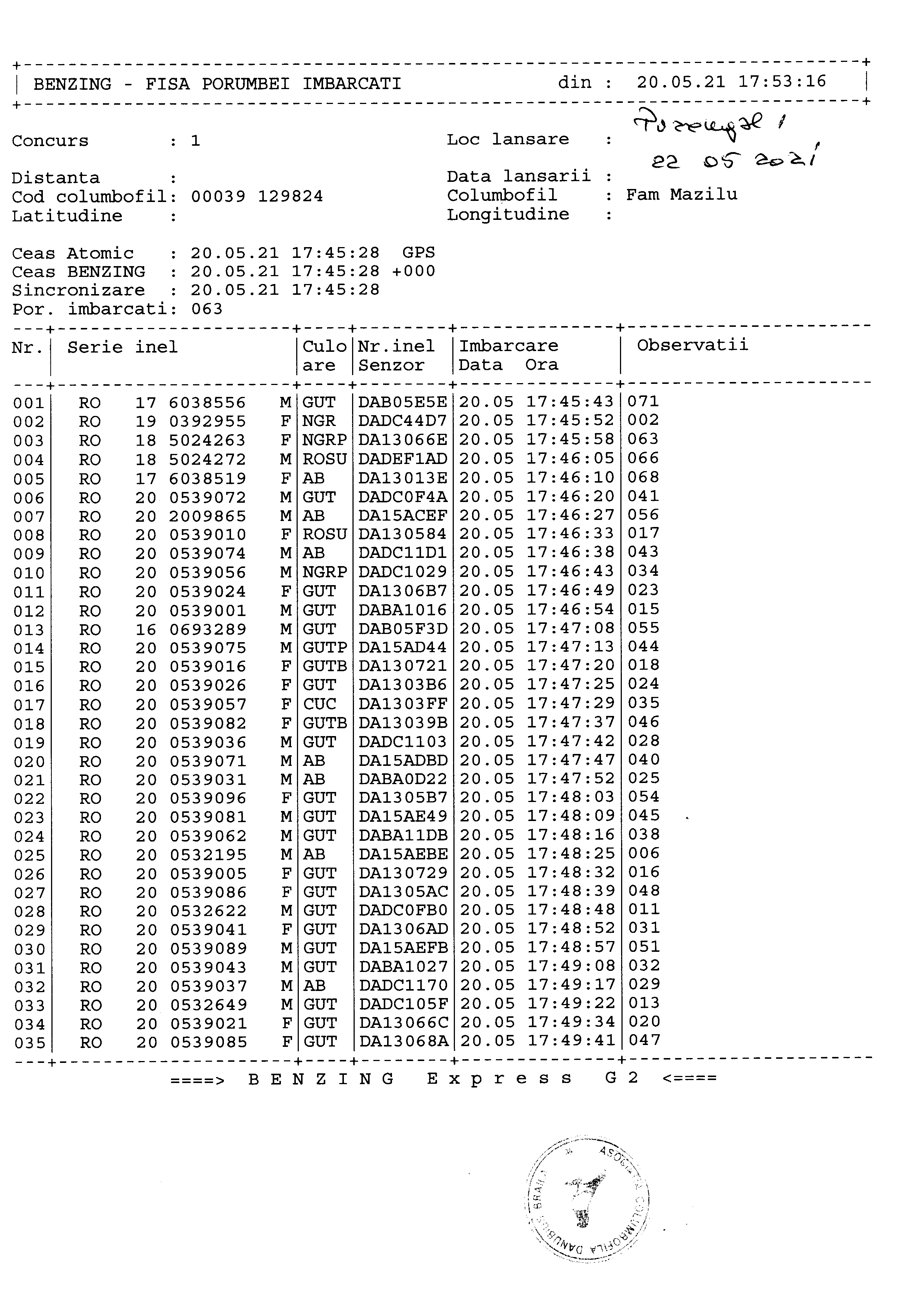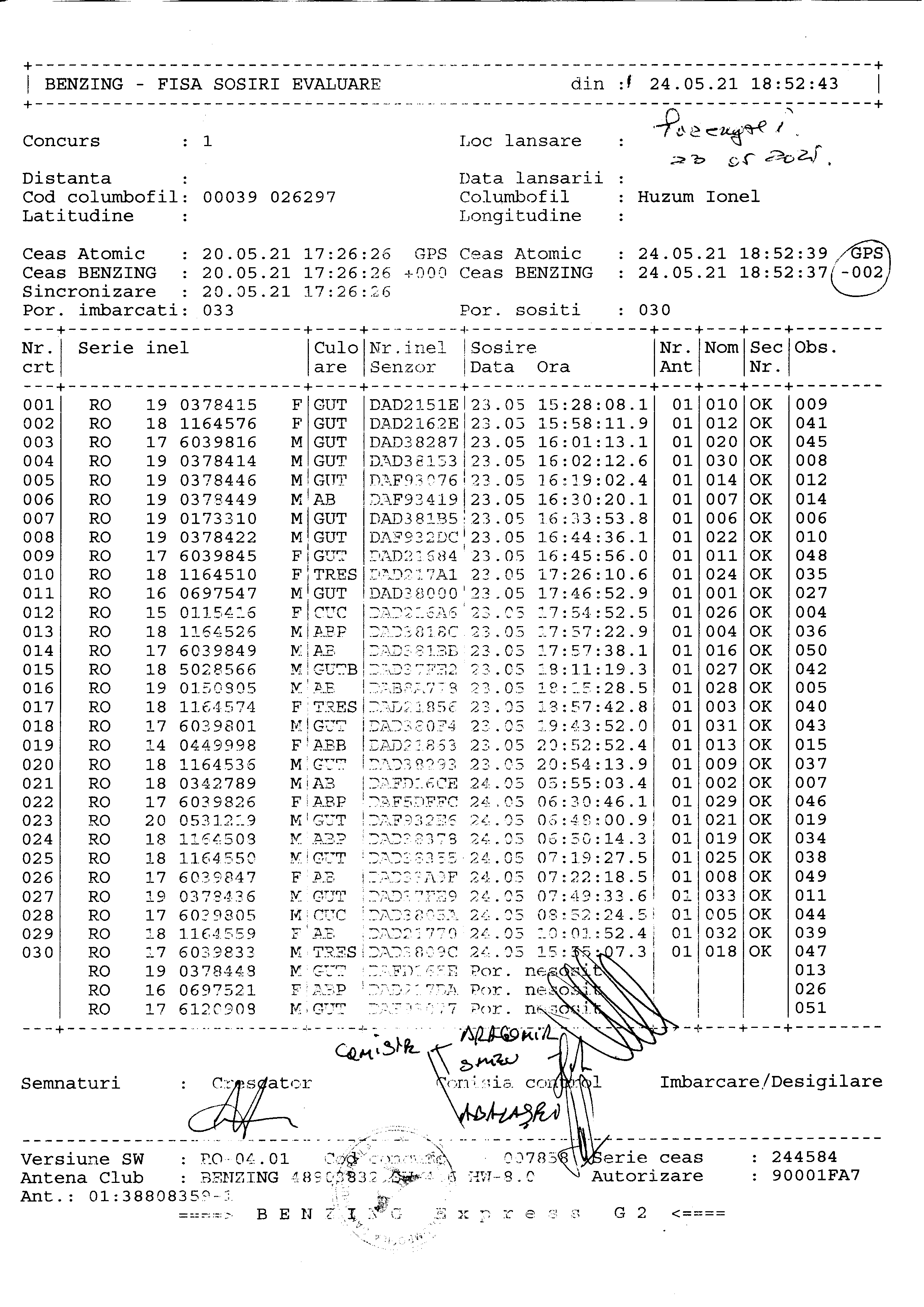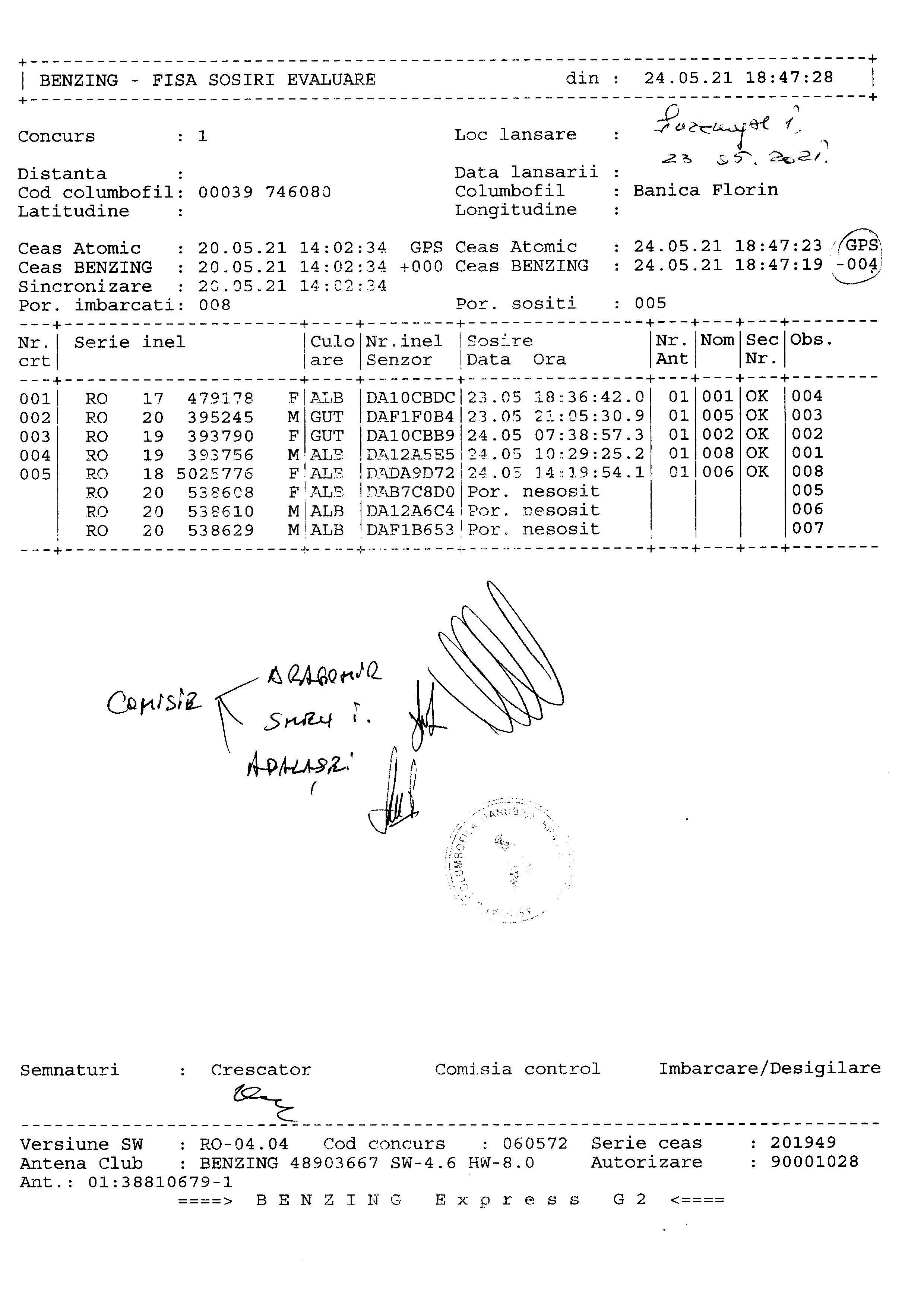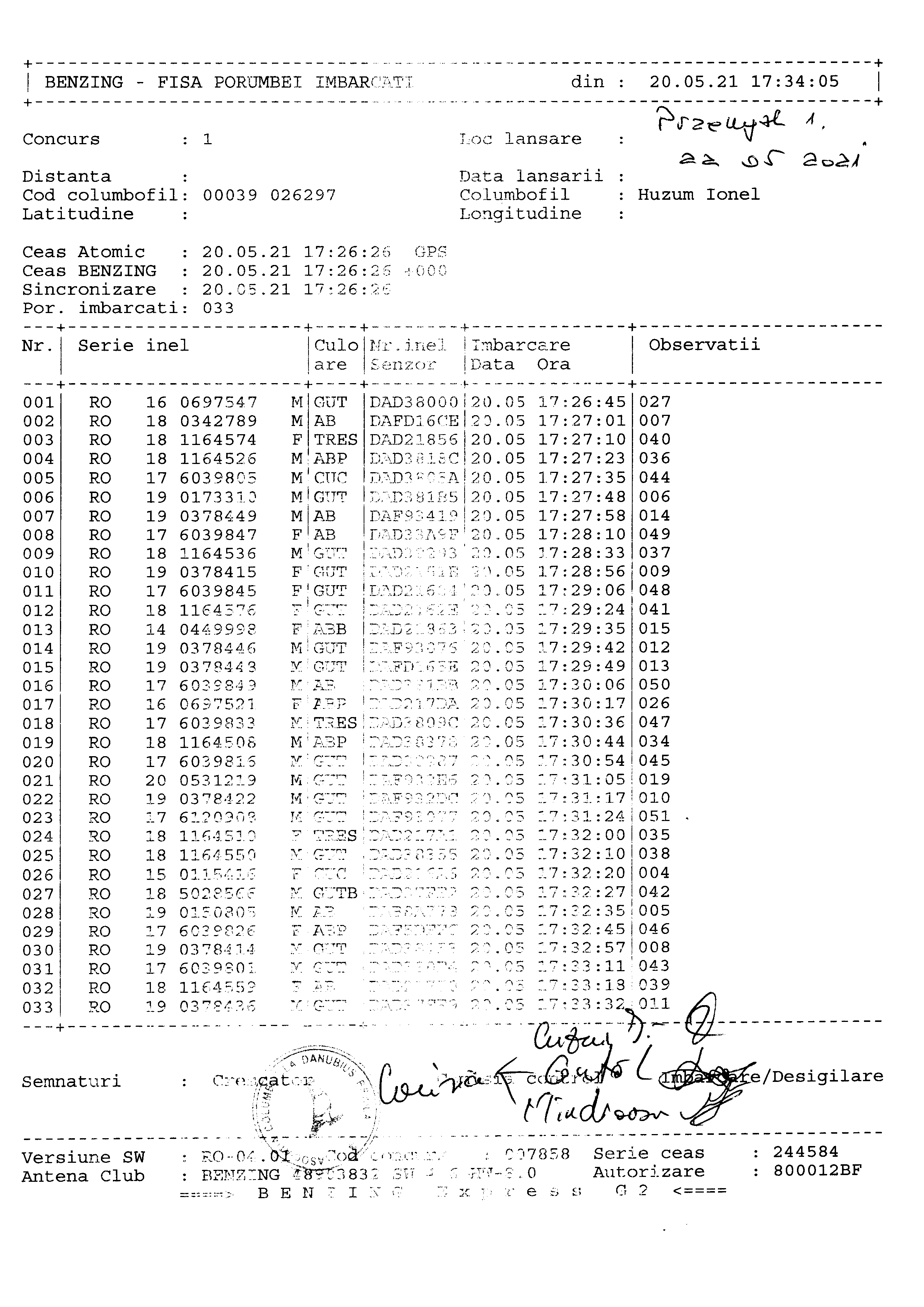 | 1 | Anghel Gheorghe | BZ9704 | Berca | [IMB P0] | [DES P0] |