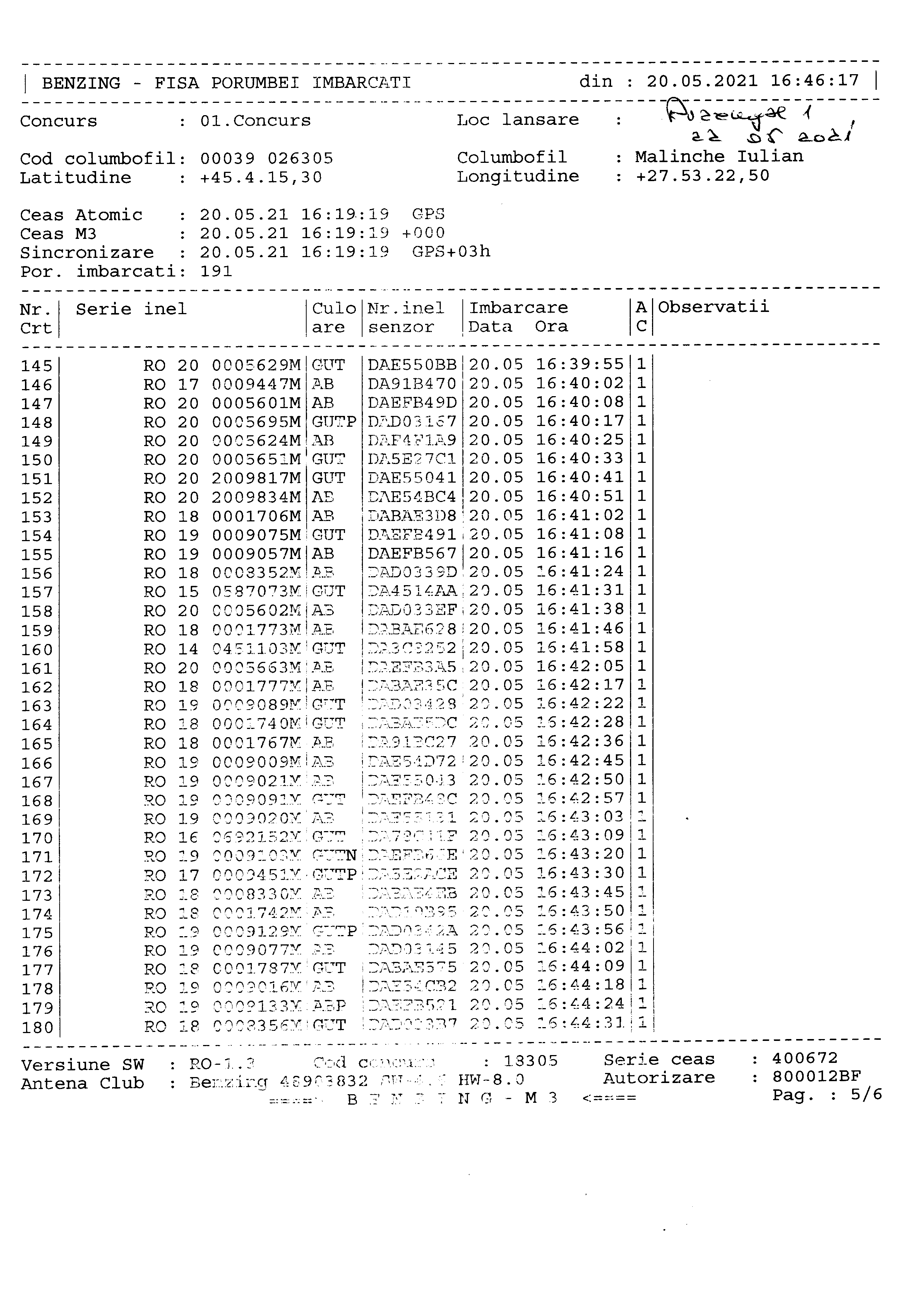 | 265 | Puiu Cosmin | BZ9906 | Ramnicu Sarat | [IMB P0] | [DES P0] |