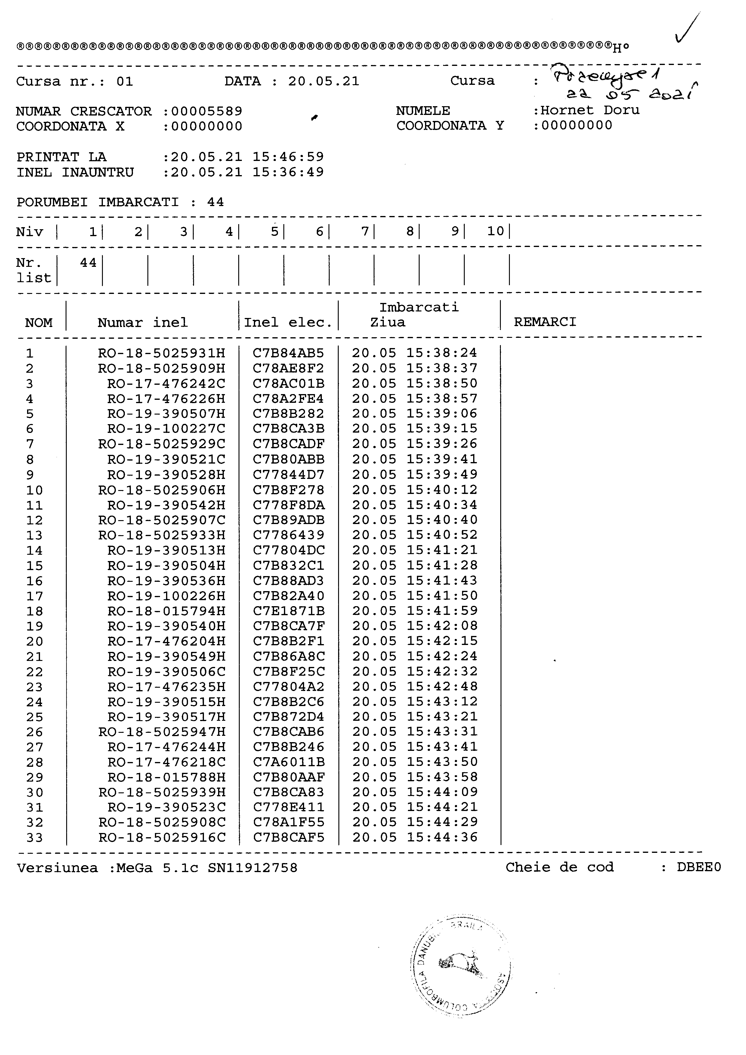 | 46 | Stefanoiu Niculae | BZ9126 | Berca | [IMB P0] | [DES P0] |