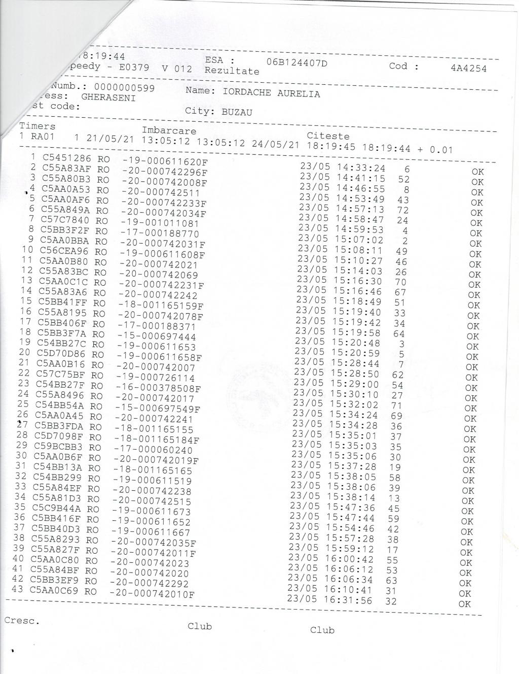 | 255 | Oancea Razvan | BZ9911 | Ramnicu Sarat | [IMB P0] | [DES P0] |
