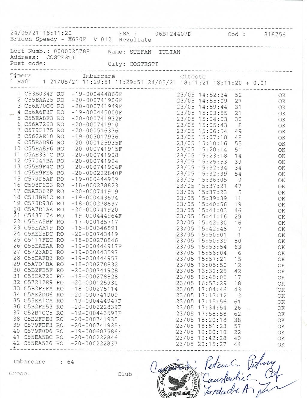 | 60 | Ciglinean Ionel | BR368 | Braila | [IMB P0] [IMB P1] | [DES P0] [DES P1] |