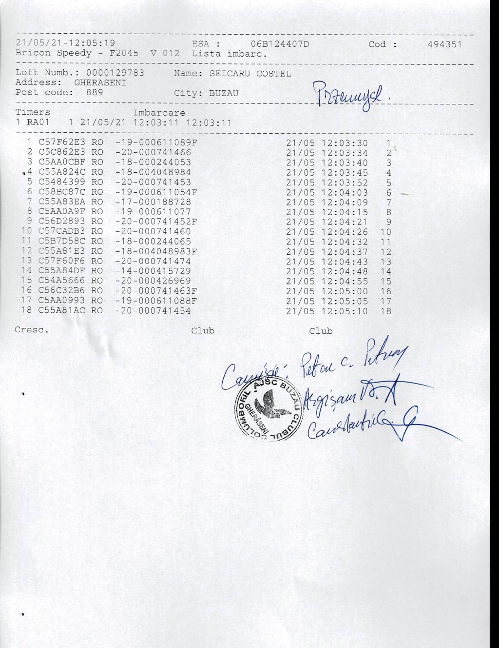 | 256 | Oancea S.+ Sorescu P. | BZ9617 | Ramnicu Sarat |
