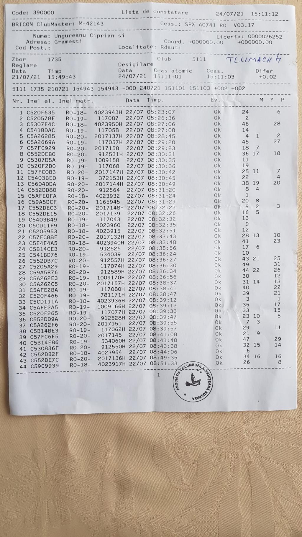 | 141 | Moloci Ovidiu | SV1009 | Radauti | [IMB P0] |