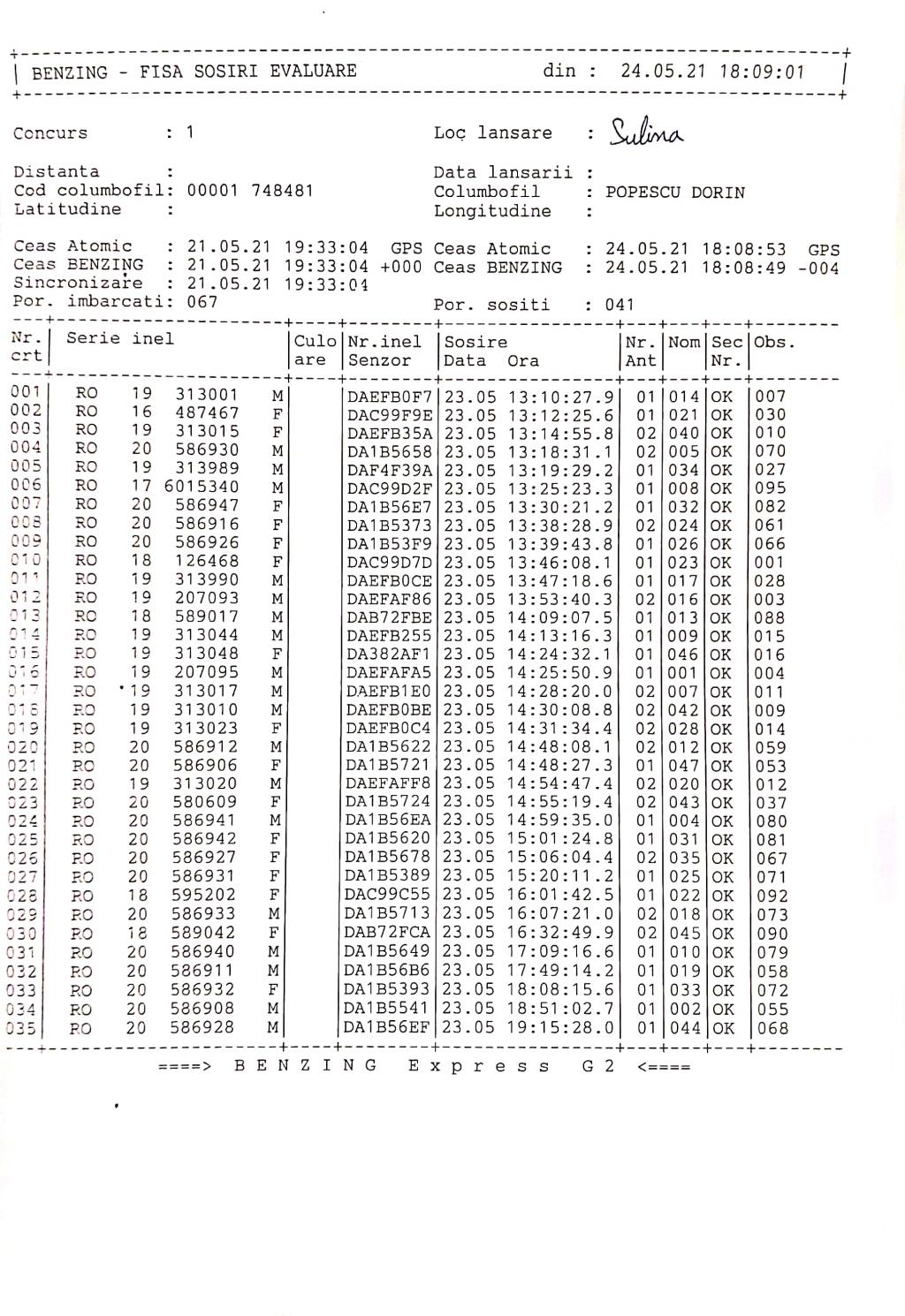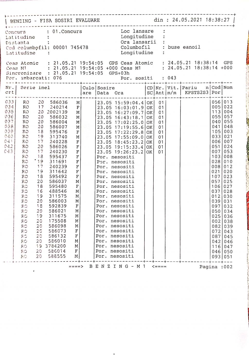 | 36 | Grigorie Catalin | MH923 | Drobeta | [IMB P0] [IMB P1] | [DES P0] [DES P1] |