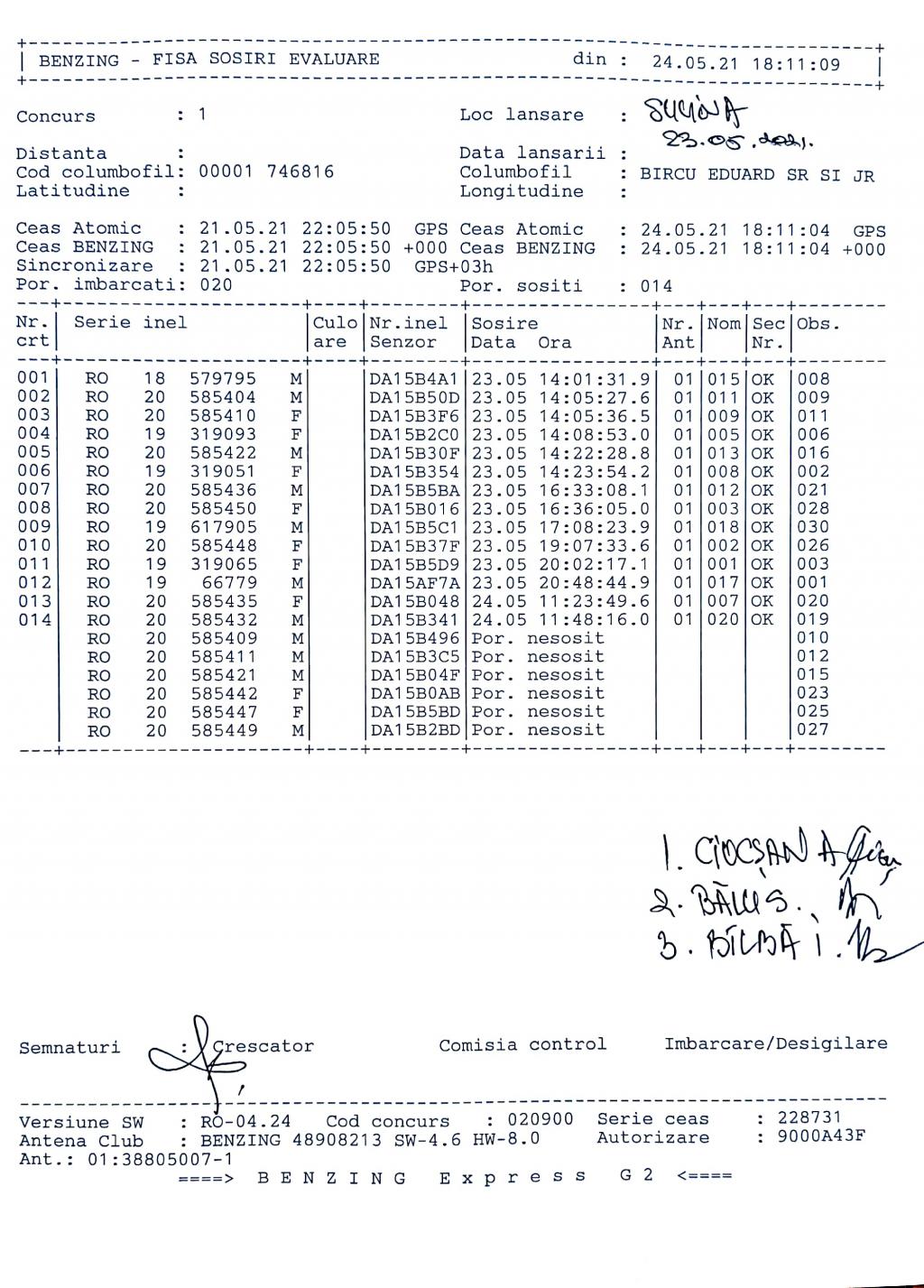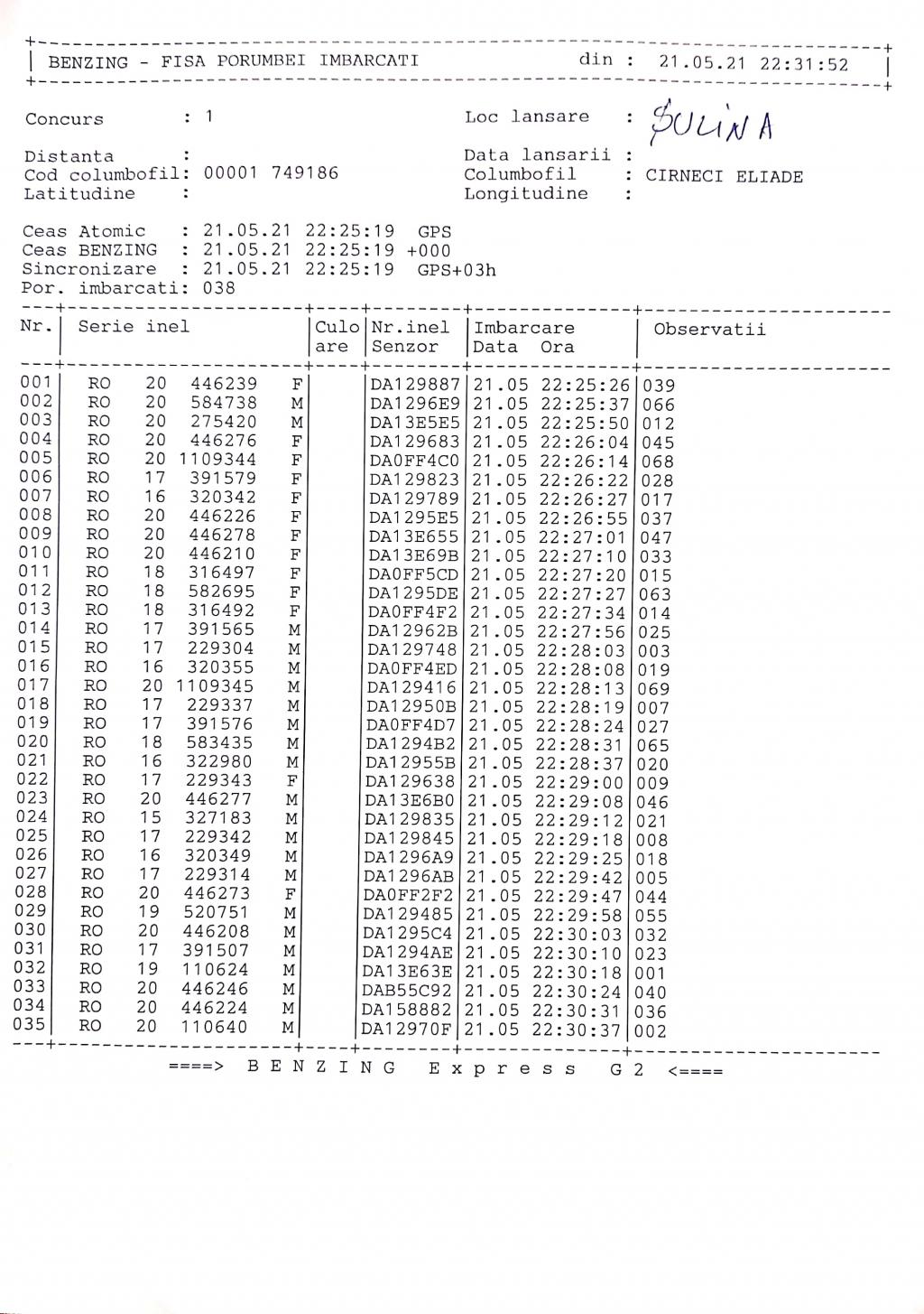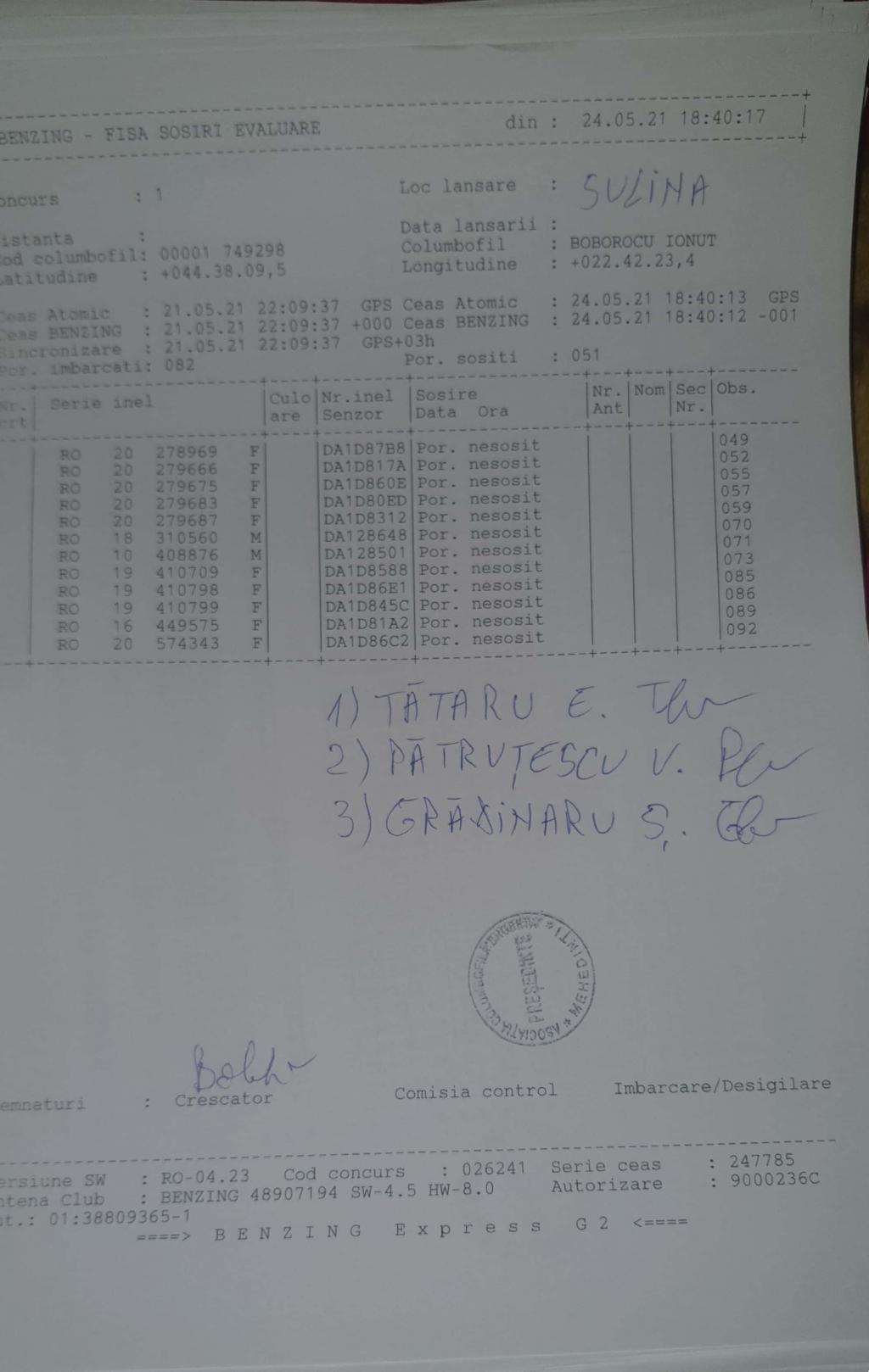 | 230 | Scaunasu Viorel | MH425 | Strehaia | [IMB P0] [IMB P1] [IMB P2] | [DES P0] [DES P1] [DES P2] |