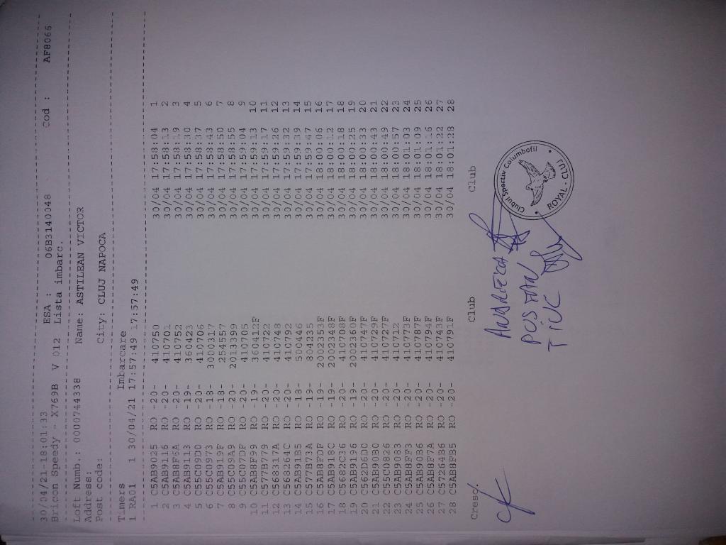 | 76 | Astilean Victor | CJ598 | Royal Cluj | [IMB P0] | [DES P0] |