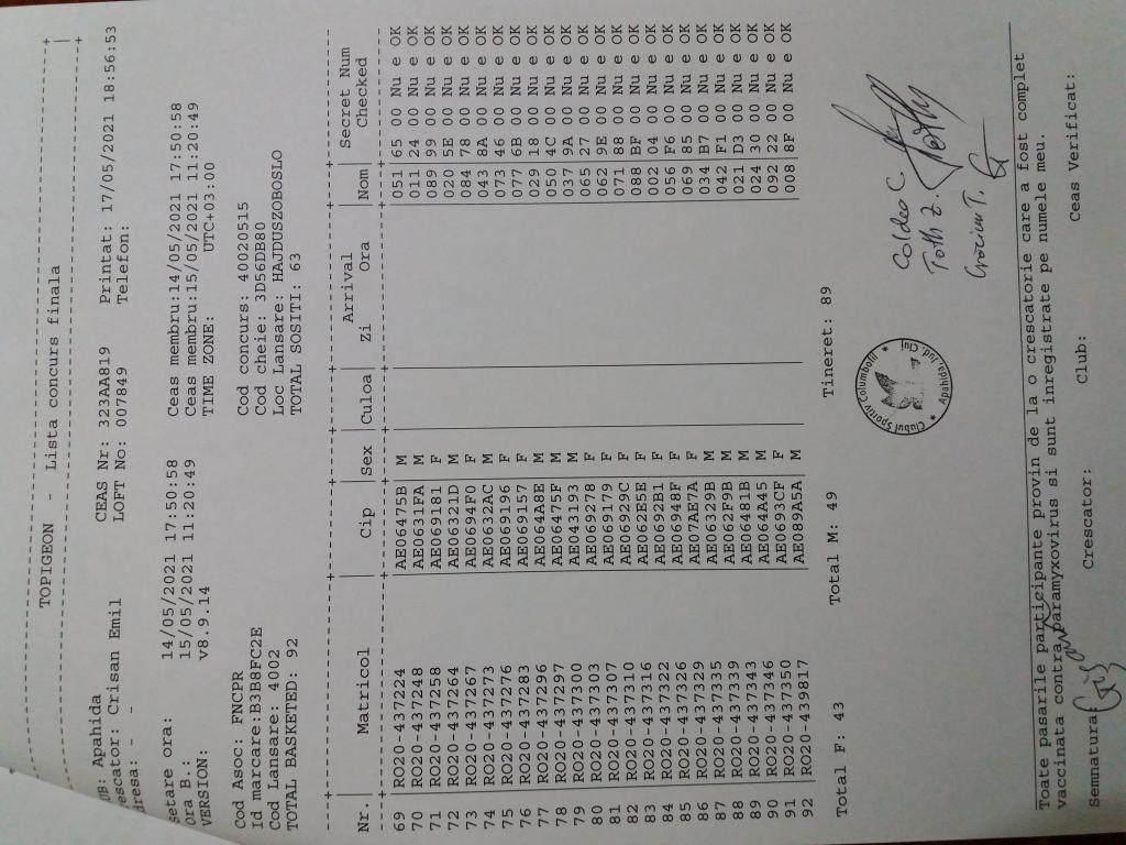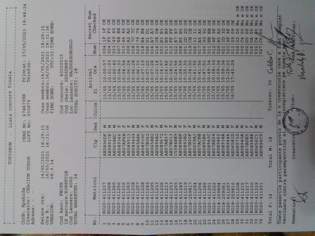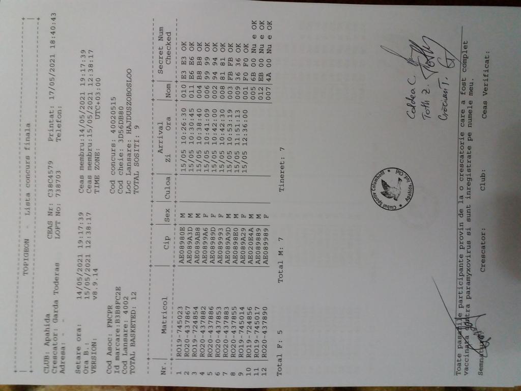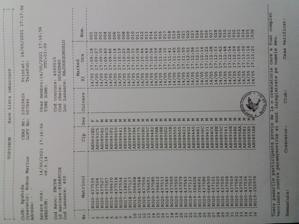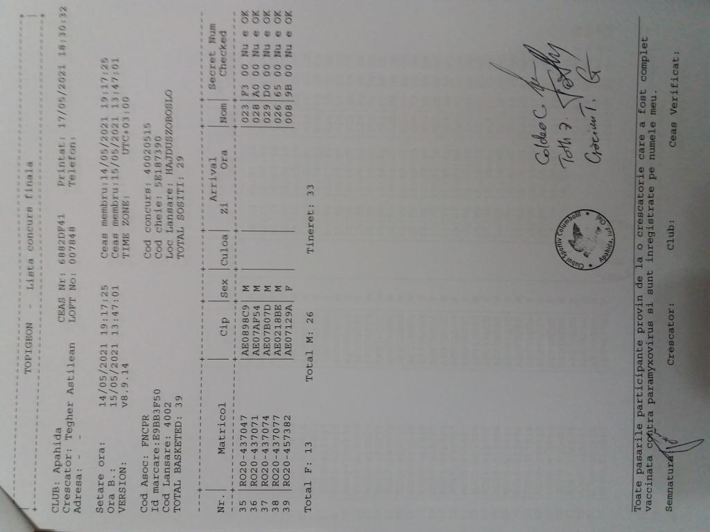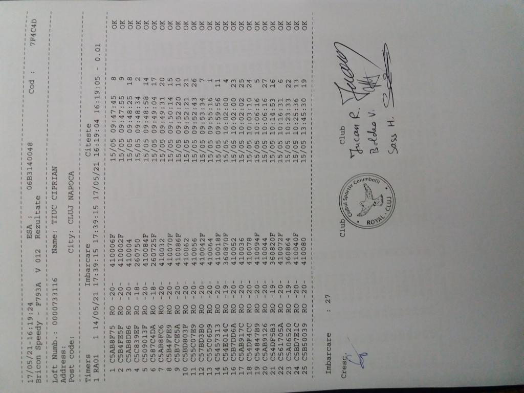 | 26 | Suciu Ioan - Antoniu | CJ633 | Apahida | [IMB P0] | [DES P0] |