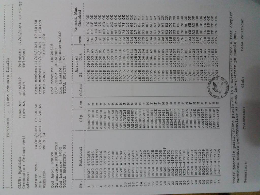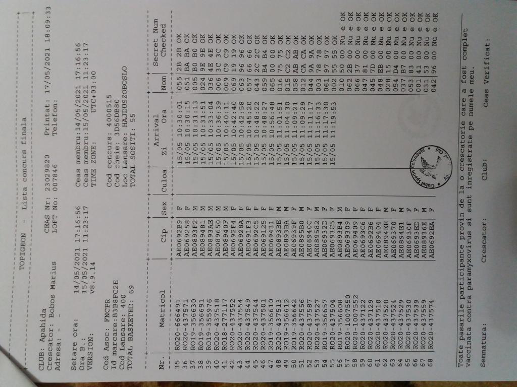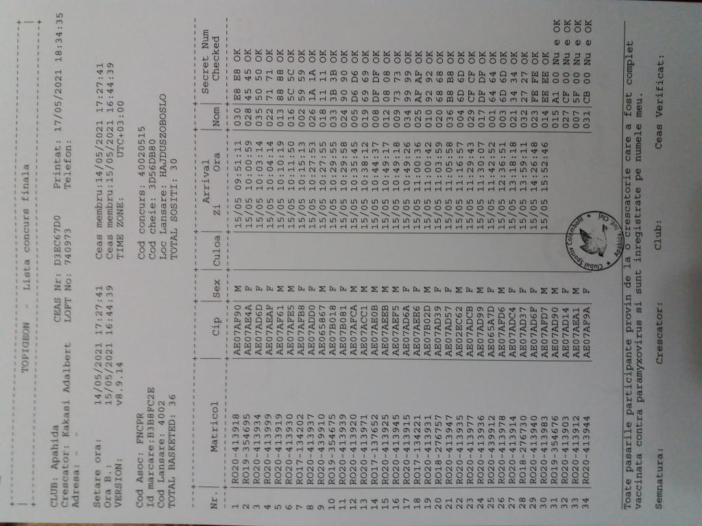 | 34 | Bagacean Ovidiu | CJ223 | Gherla |