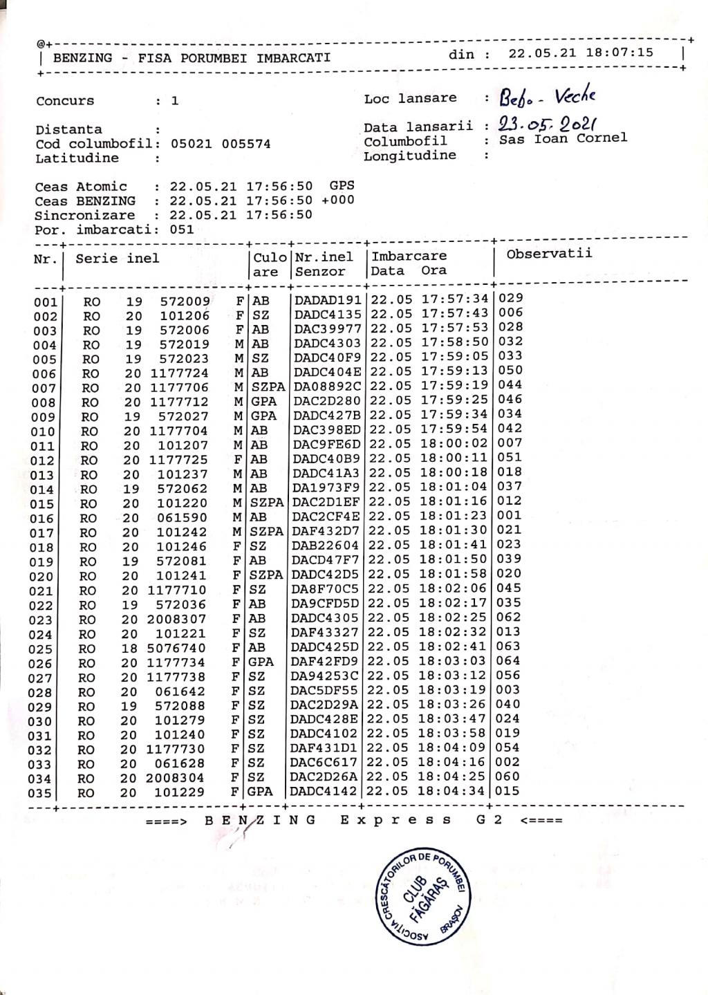 | 22 | Gabor Ovidiu | BV491 | Fagaras | [IMB P0] | [DES P0] |