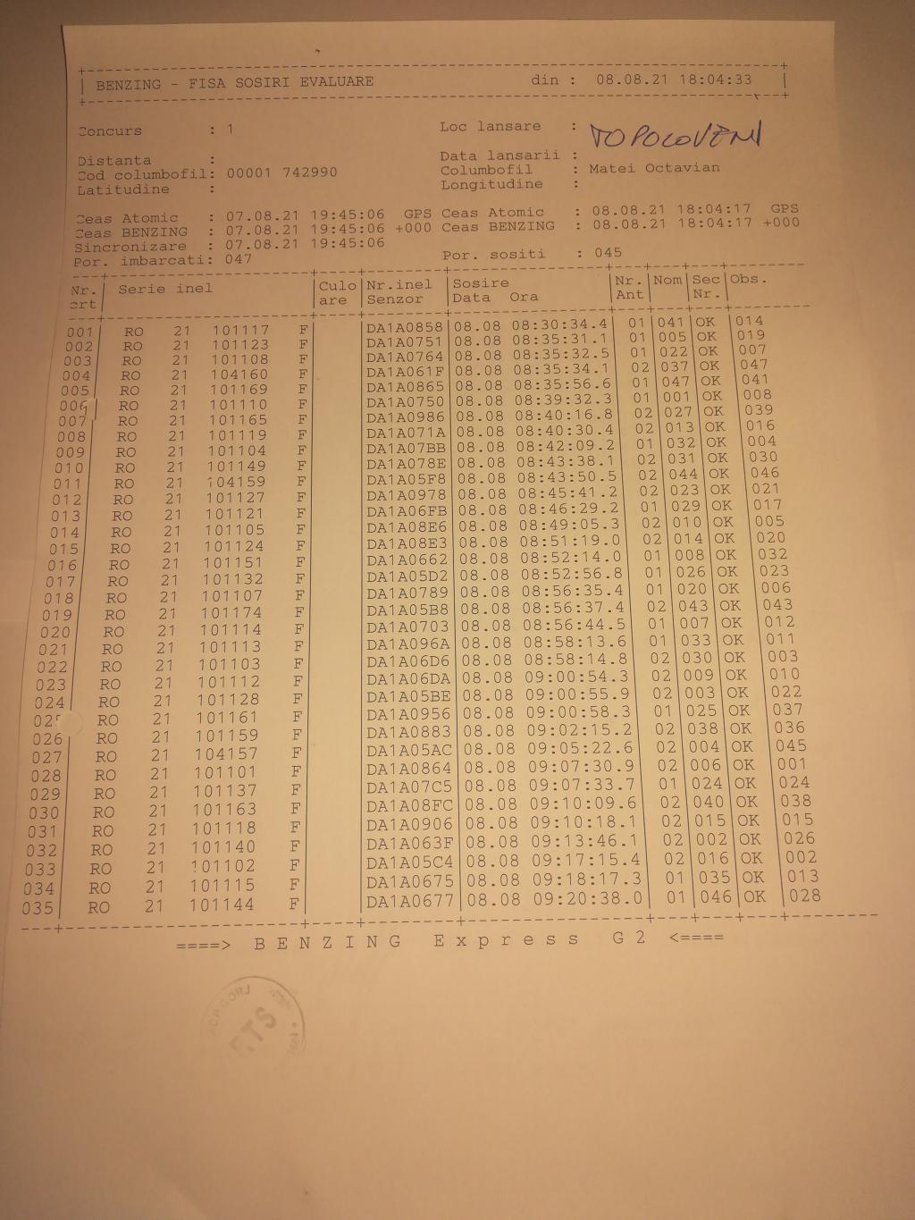 | 2 | Borleanu Ionut | GJ547 | Avantul Barbatesti | [IMB P0] |