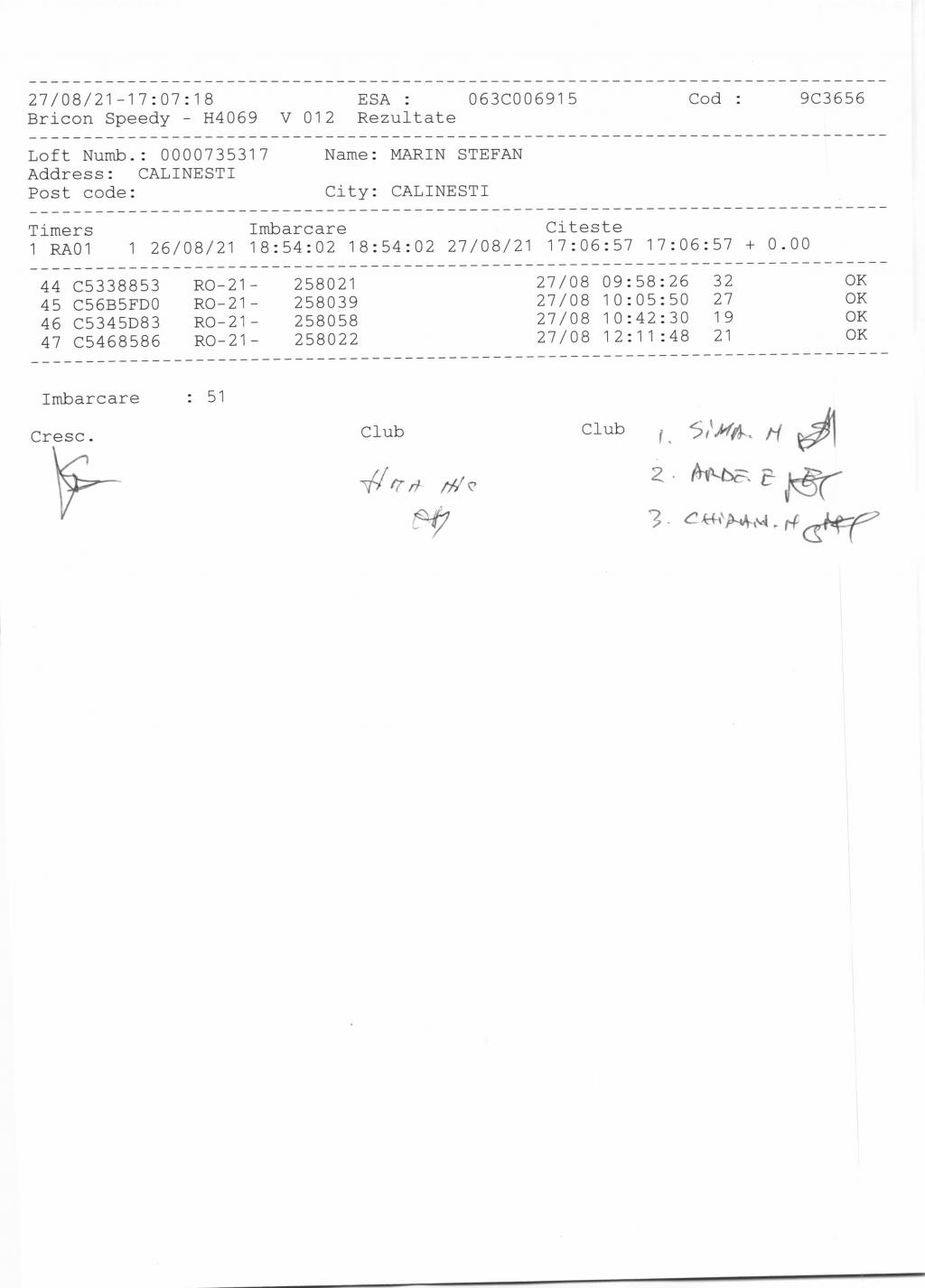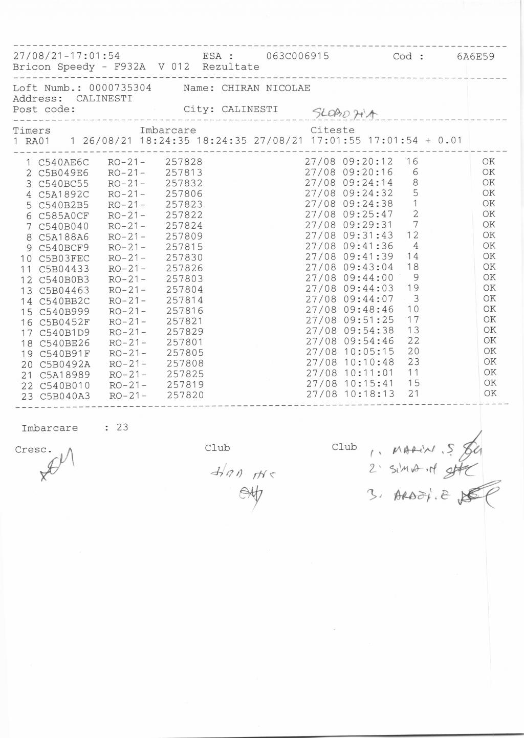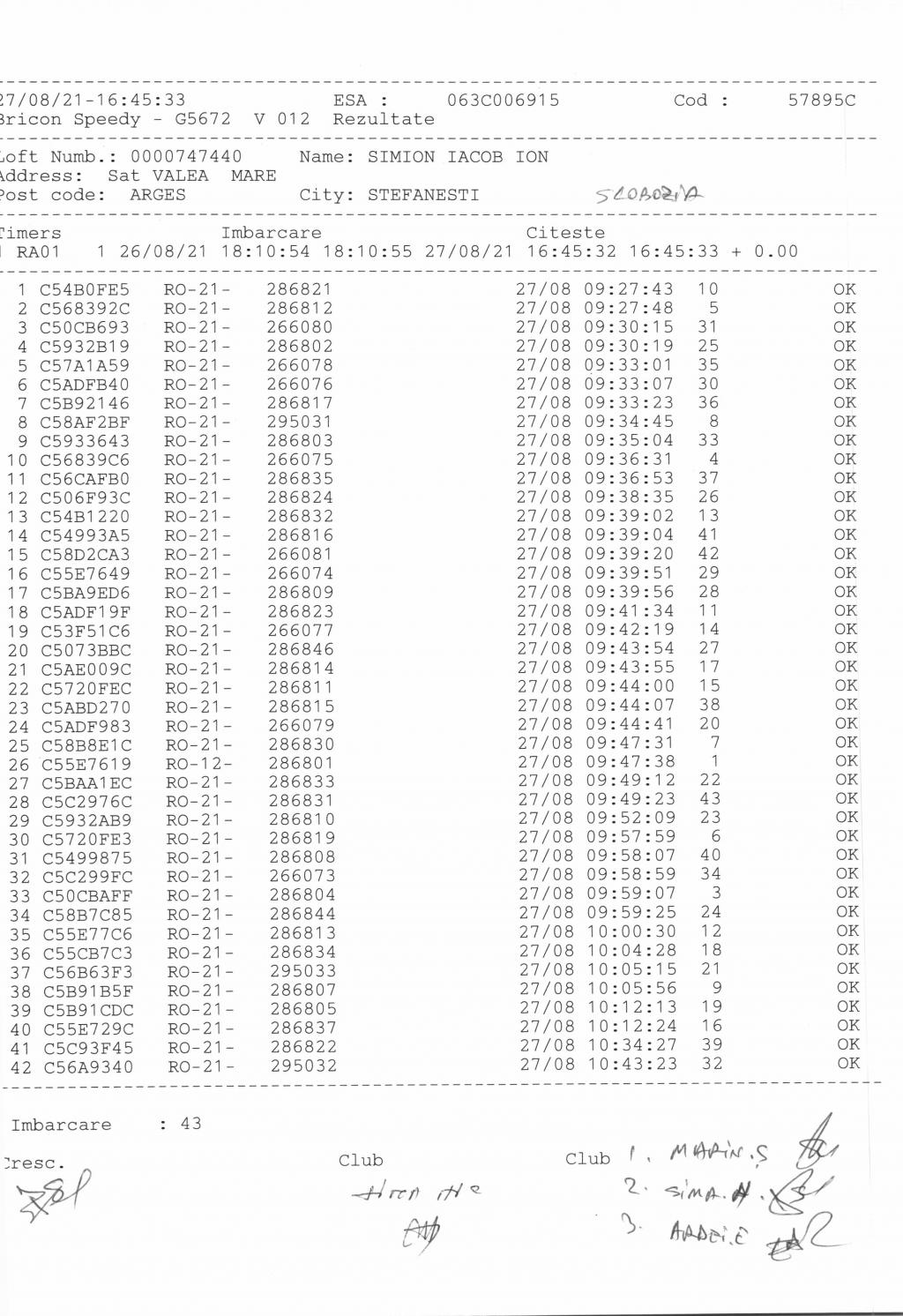 | 94 | Neculae Catalin+bogdan | AG1352 | Stefanesti |