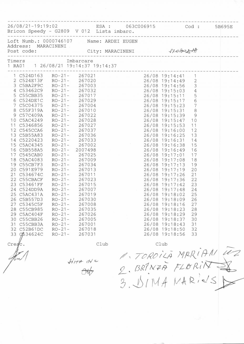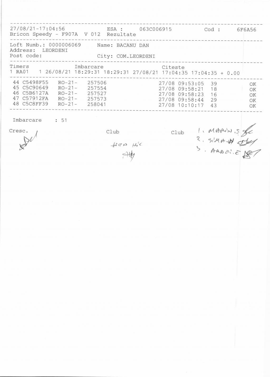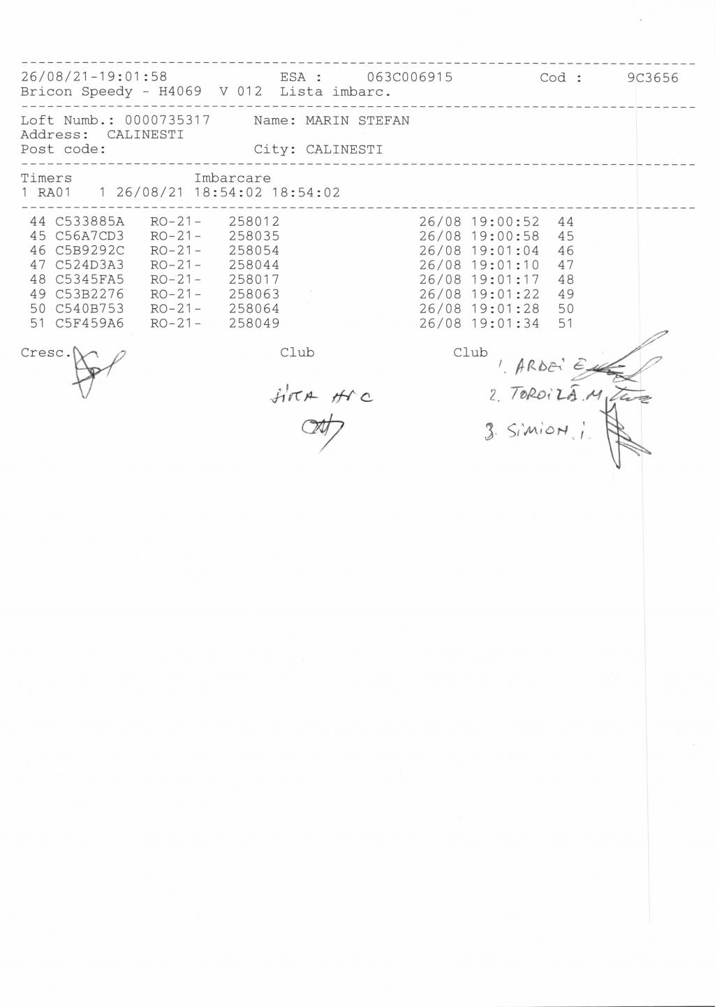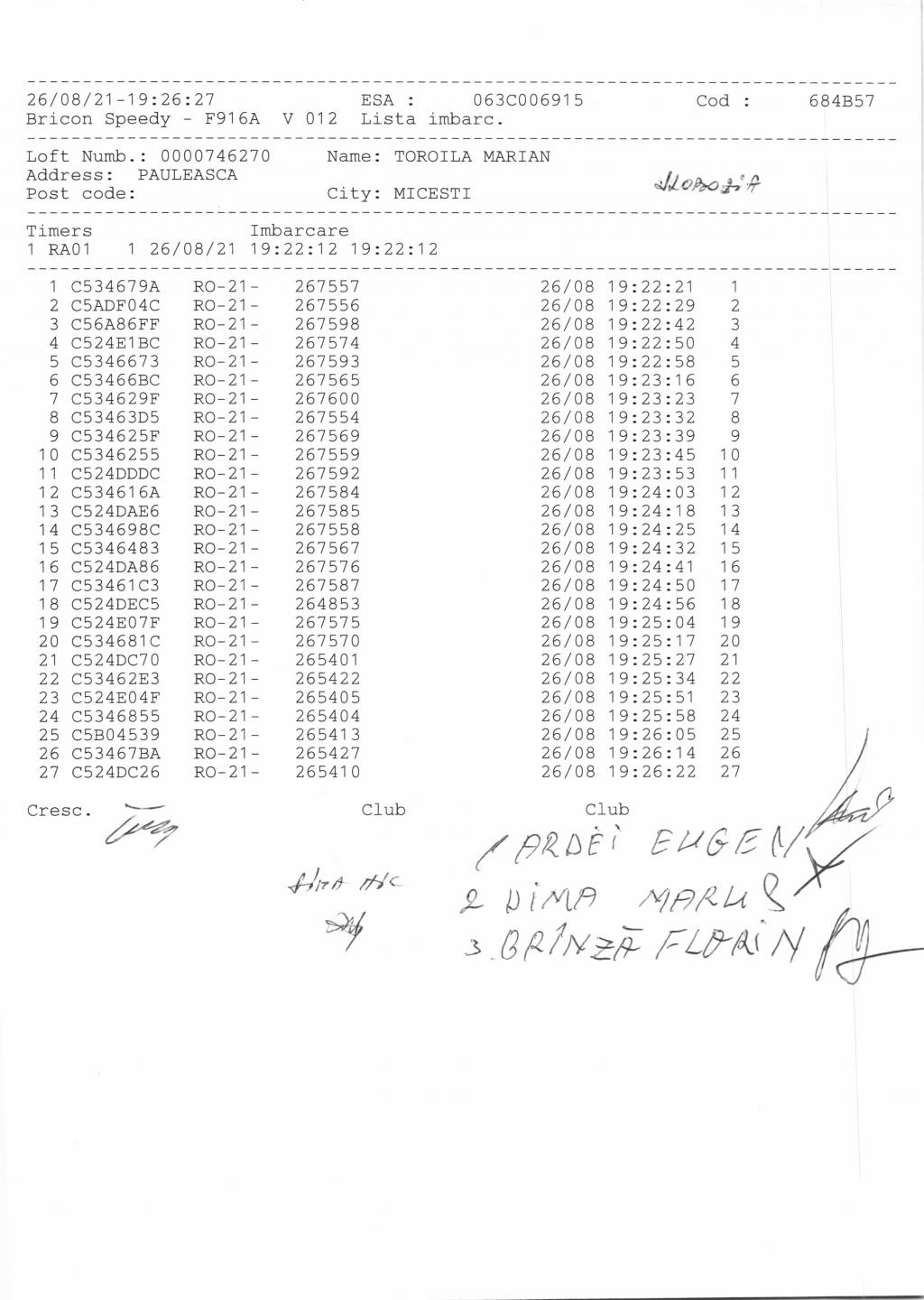 | 94 | Neculae Catalin+bogdan | AG1352 | Stefanesti |