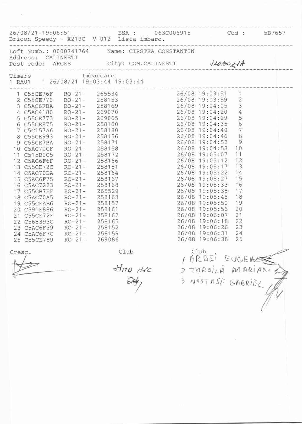 | 75 | Cristescu +tuturuz | AG1365 | Stefanesti |