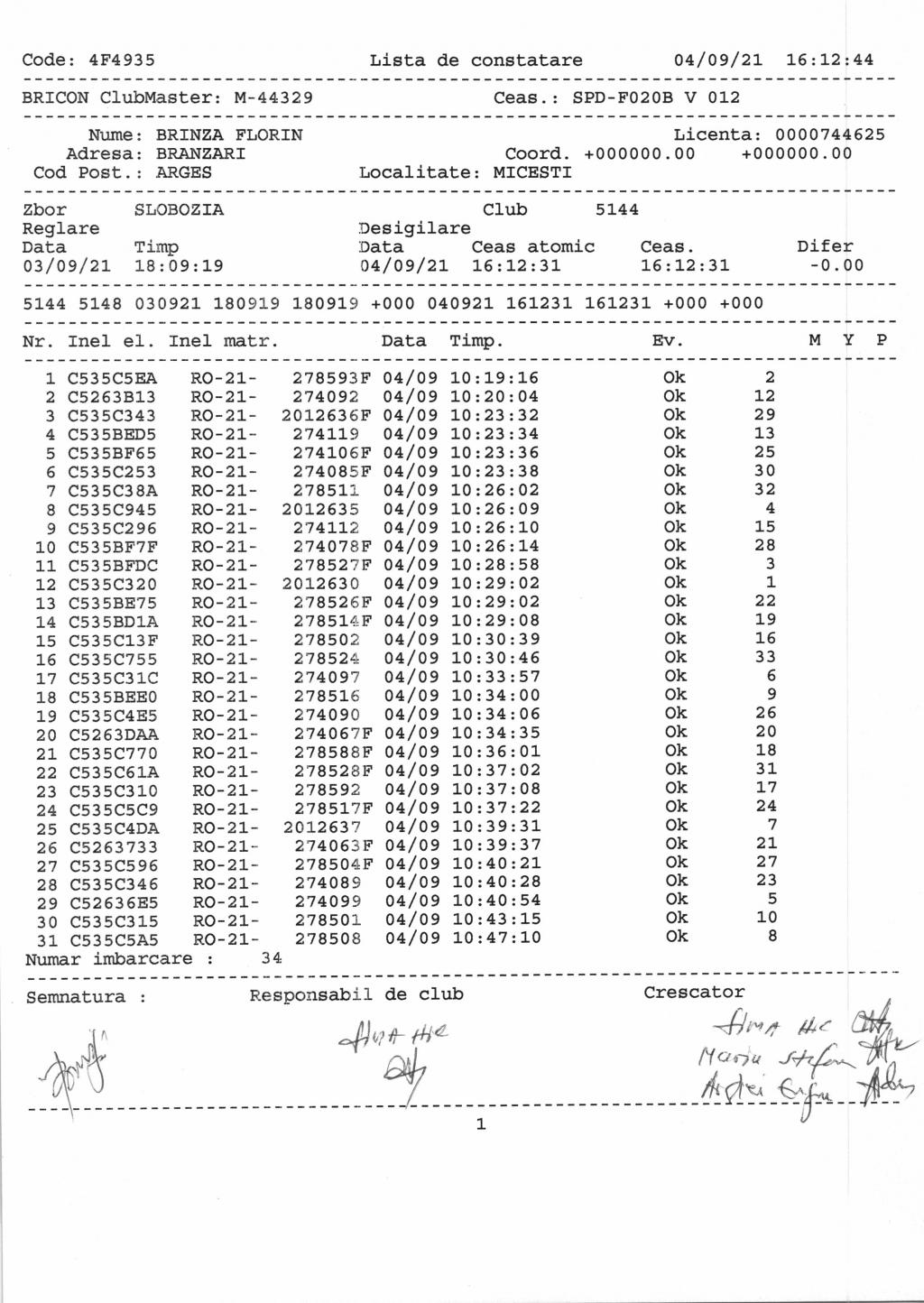 | 34 | Floroian D. + Nicula E. | AG1363 | Costesti |
