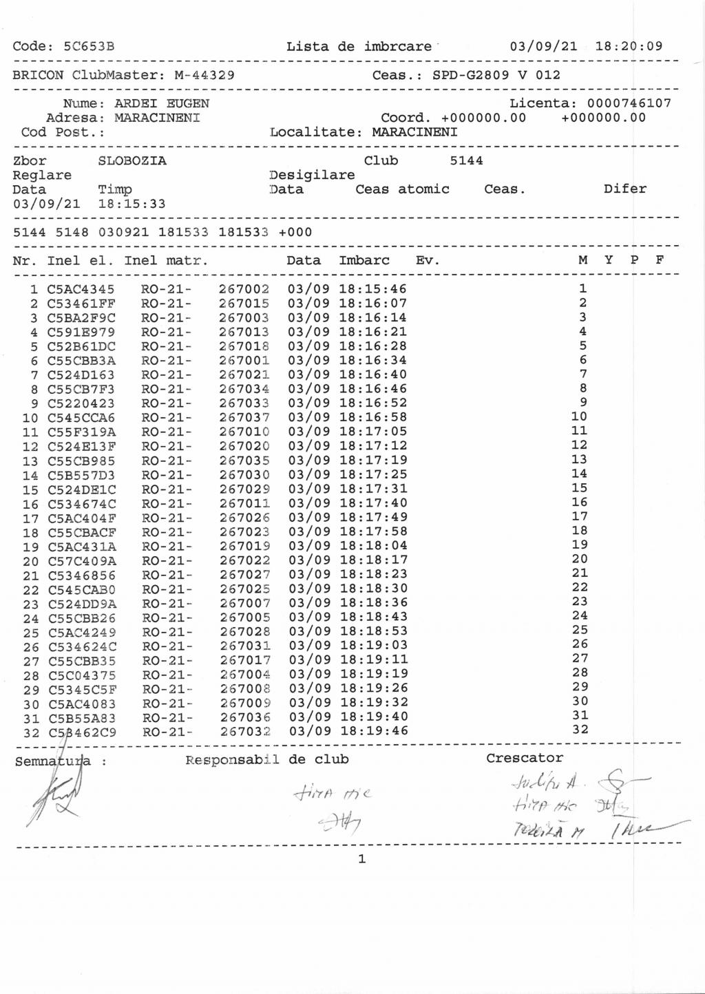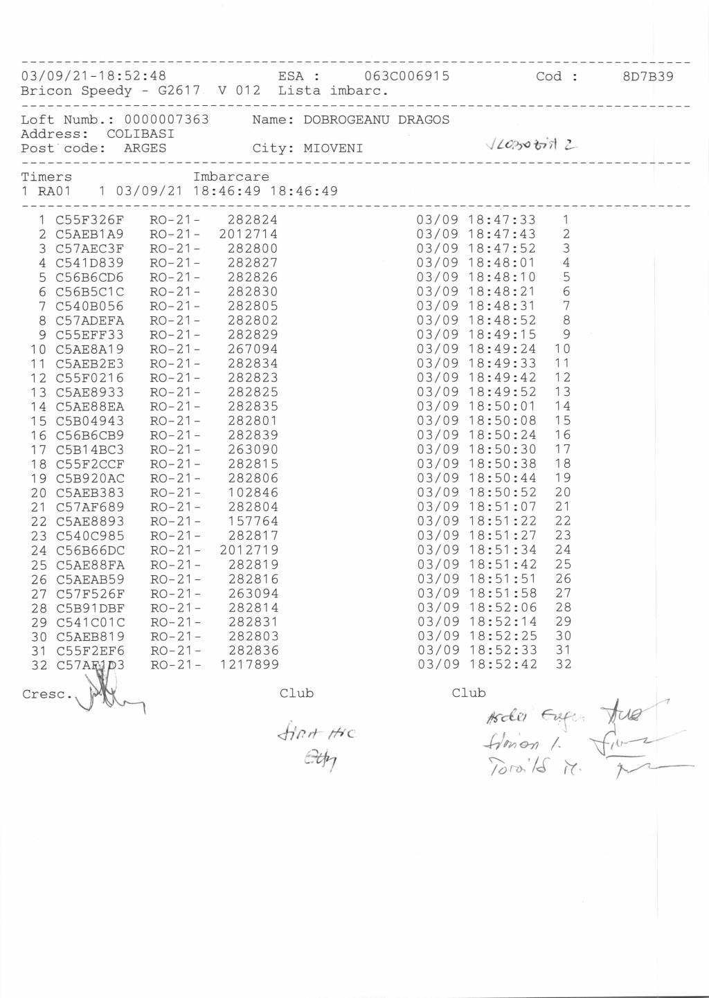 | 31 | Cristian Florin Vladut | AG1270 | Costesti |