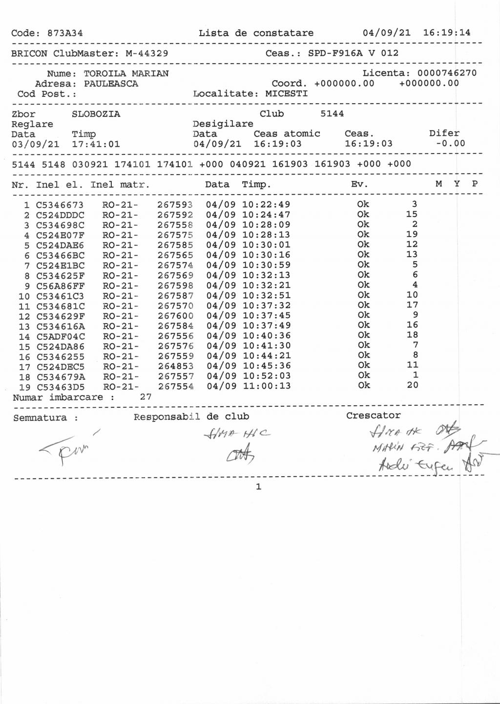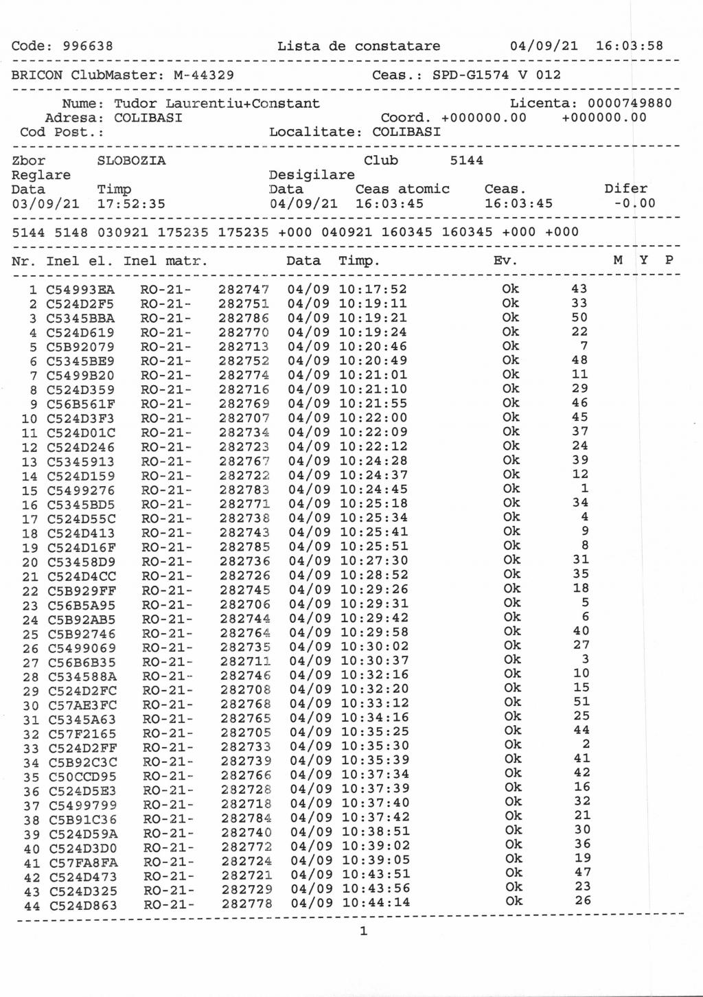 | 71 | Filip Cristinel | AG1210 | Stefanesti |