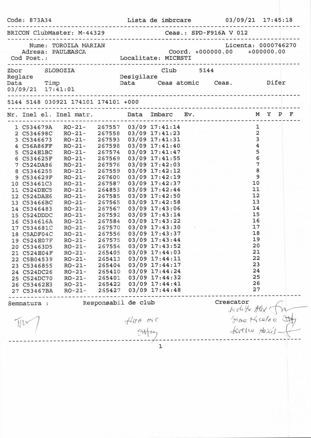 | ## | NUME | COD | CLUB/CENTRU IMBARCARE | FISA - IMBARCARE | FISA - DESIGILARE |