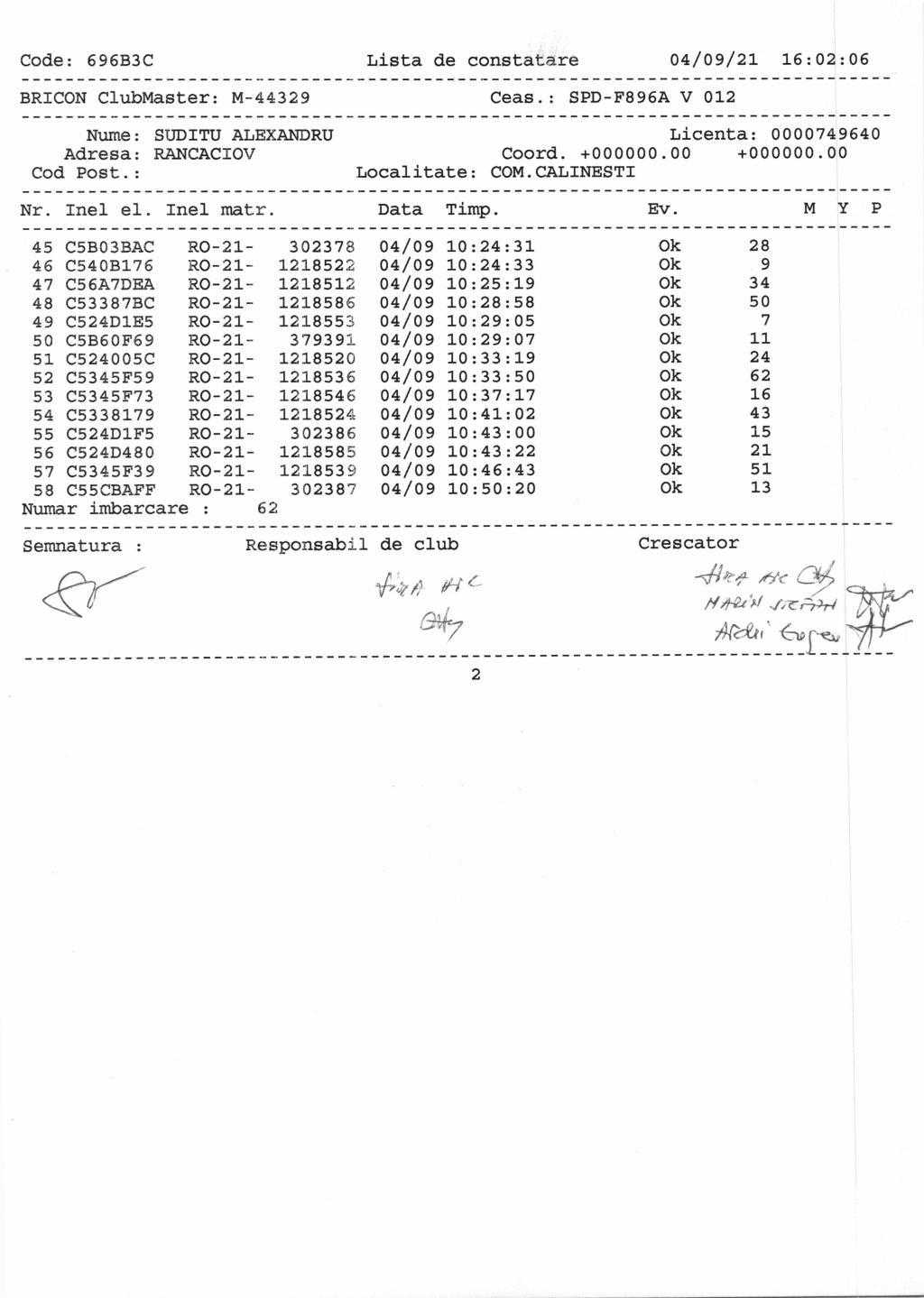| 1 | Alexe C. + Andrei I. | AG1072 | Bradu |