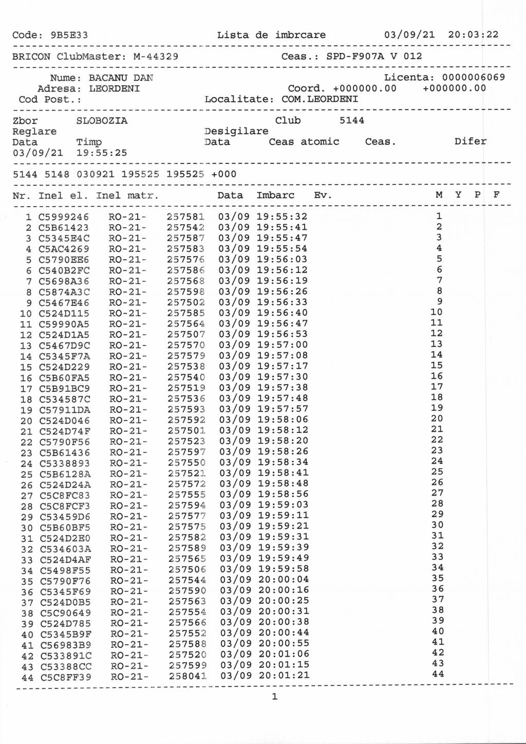 | 44 | Boada Mircea Adrian | AG1342 | Costesti | [IMB P0] | |