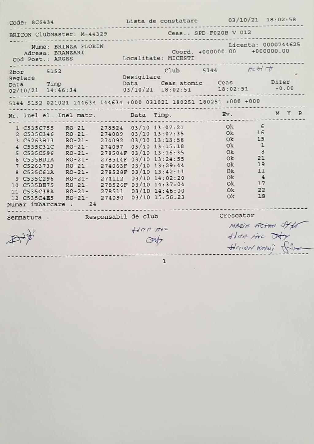 | 21 | Floroian D. + Nicula E. | AG1363 | Costesti |