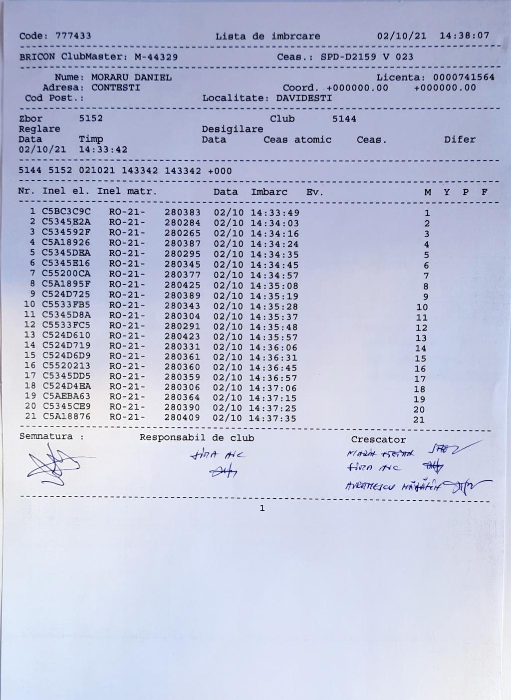 | 37 | Avramescu Madalin | AG1158 | Stefanesti | [IMB P0] | |