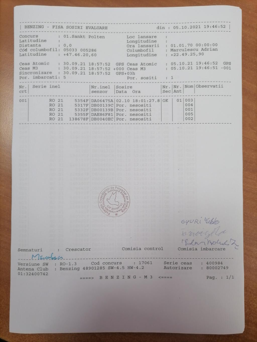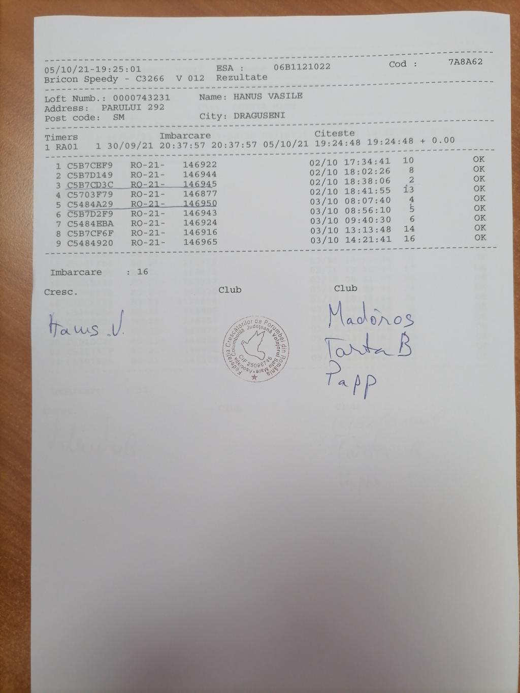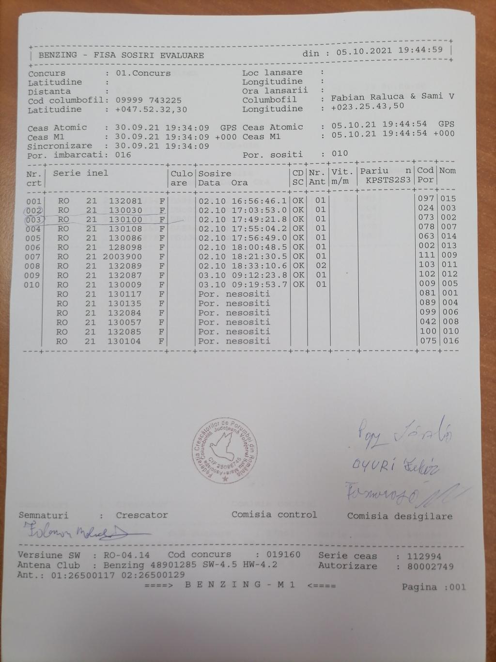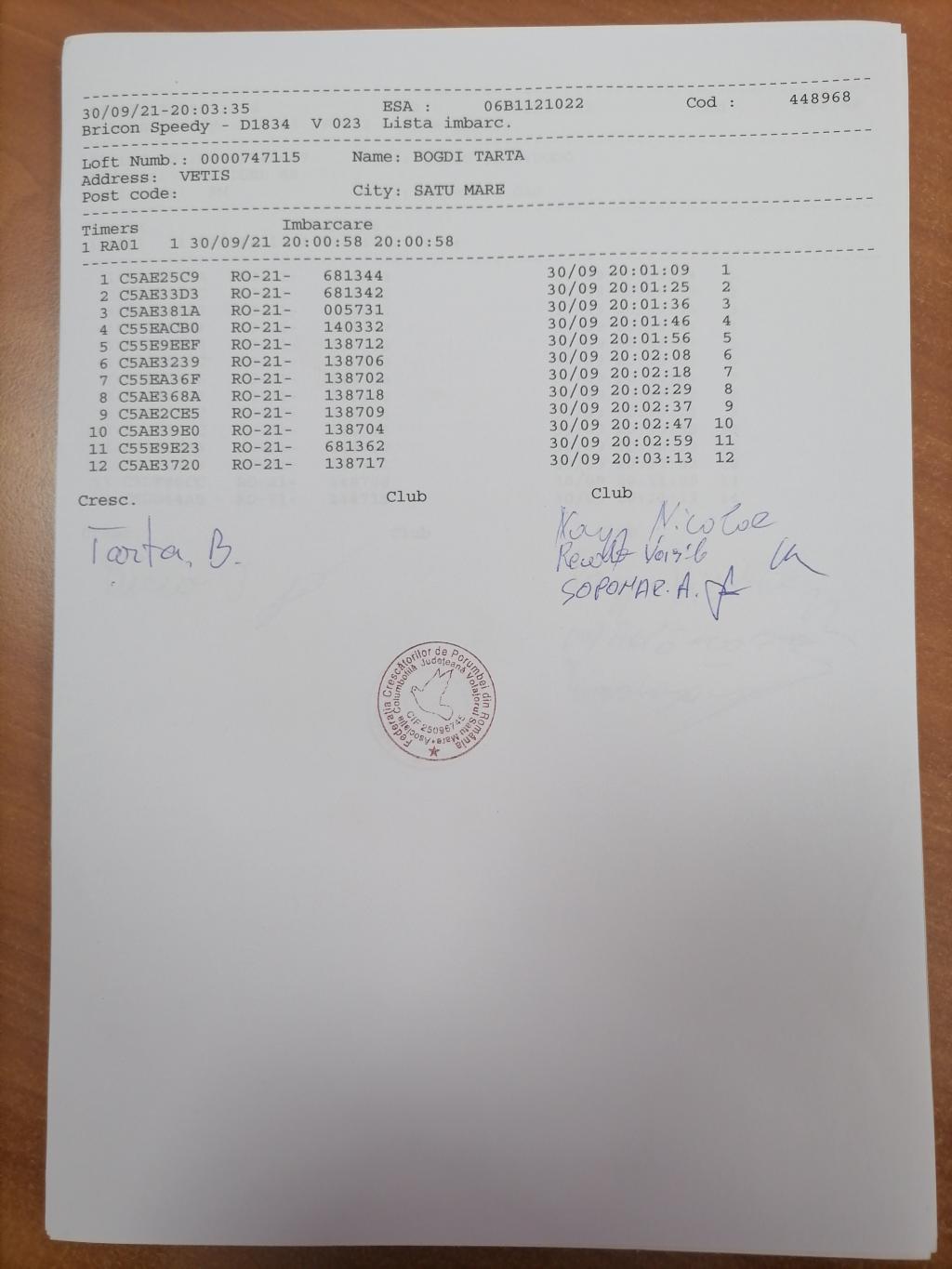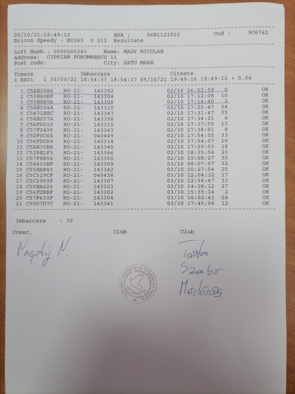| 1 | Fekete Alexandru | BH1270 | Satu Mare |
