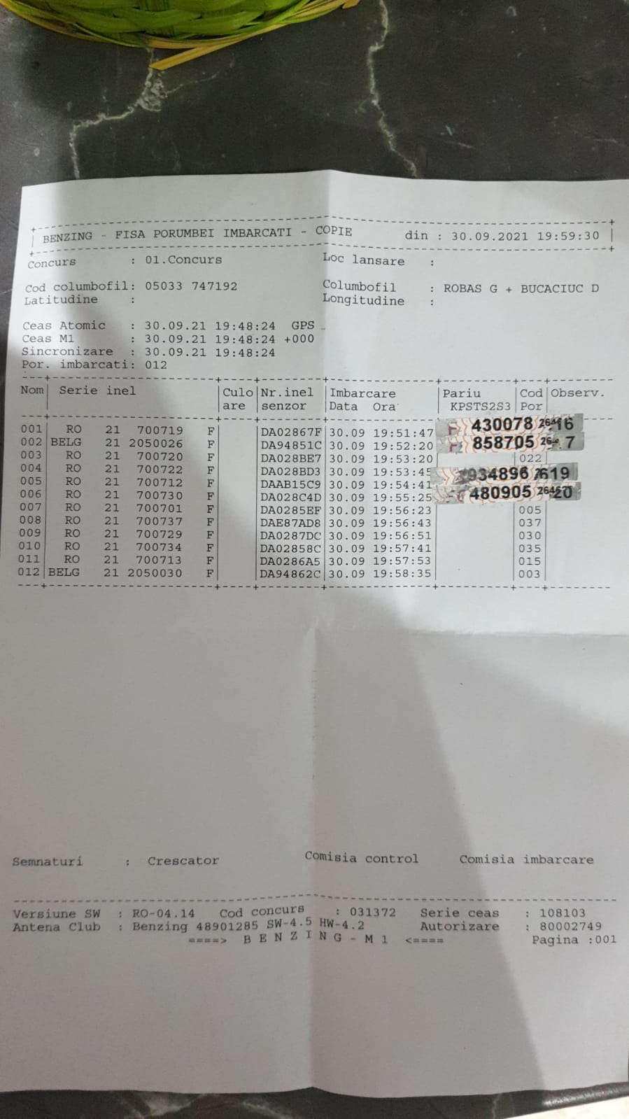 | ## | NUME | COD | CLUB/CENTRU IMBARCARE | FISA - IMBARCARE | FISA - DESIGILARE |