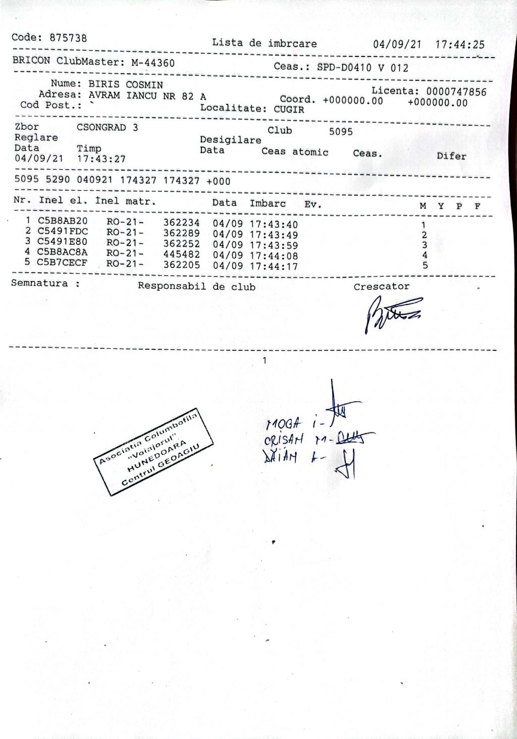 | 3 | Biris Petrisor | HD1337 | BRAD |