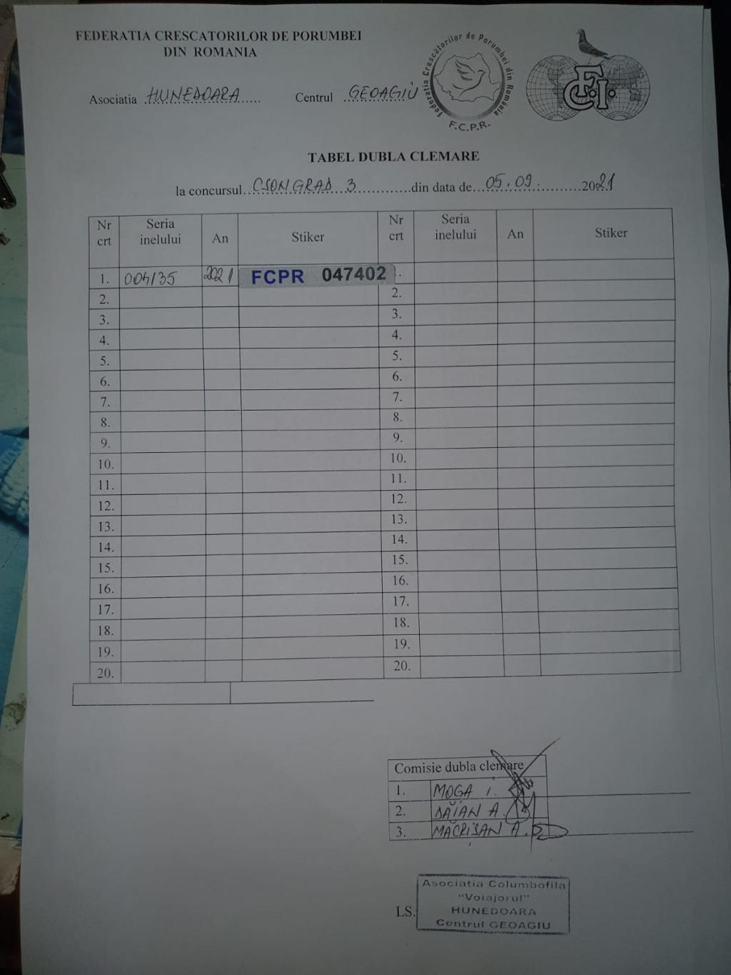 | 4 | Cioara Valentin + Andreea | HD1196 | BRAD |