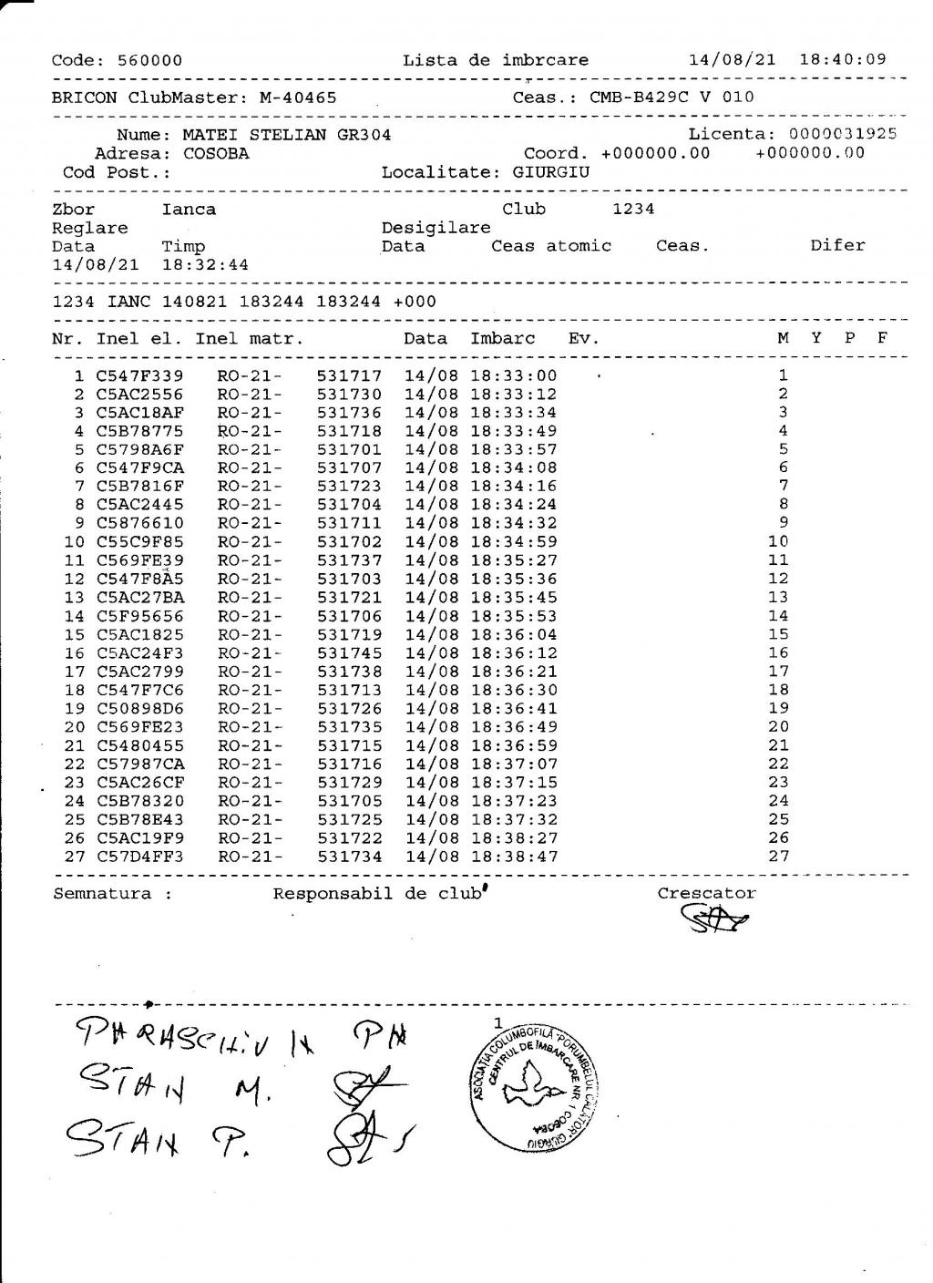 | 38 | Ion Lucian Ionut | DB565 | Crevedia | [IMB P0] | [DES P0] |