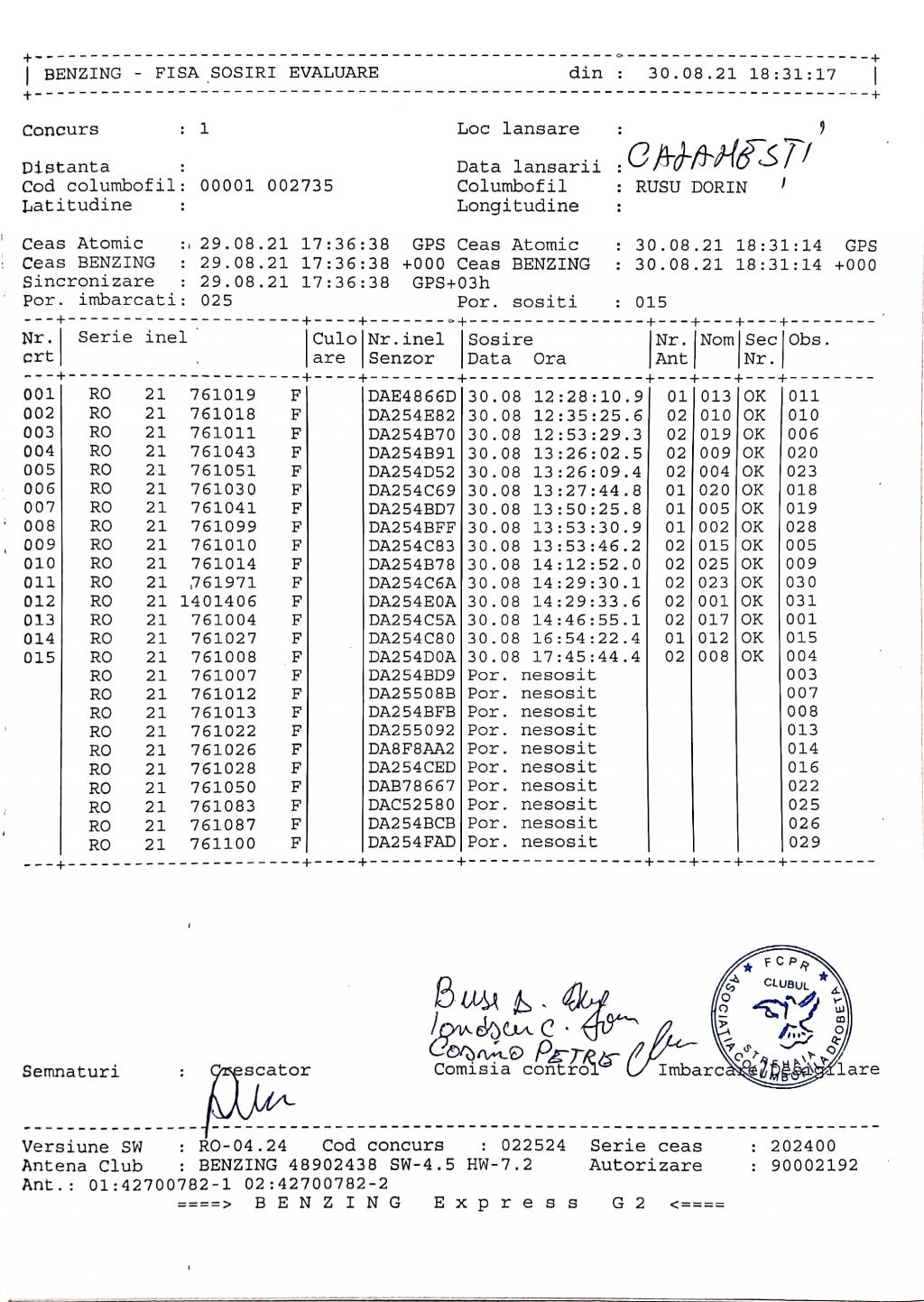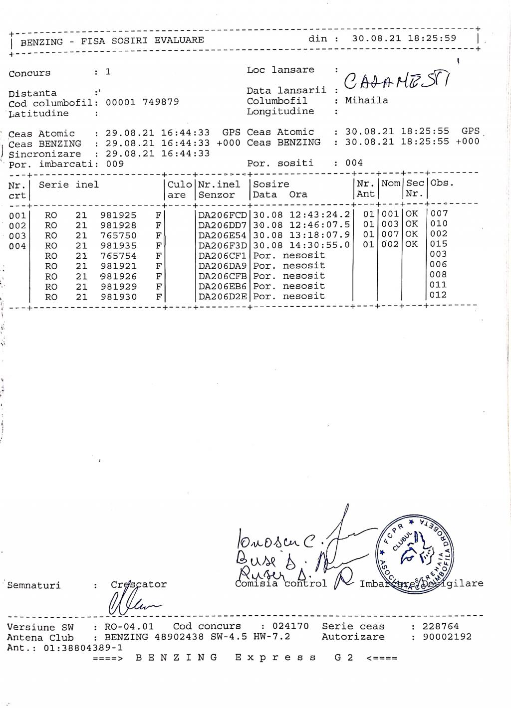 | 90 | Badulescu Costi | MH699 | Strehaia | [IMB P0] [IMB P1] | [DES P0] [DES P1] |