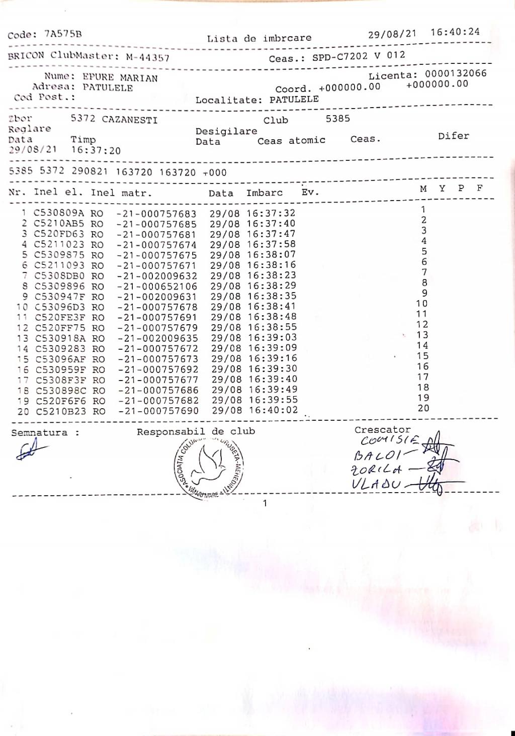 | ## | NUME | COD | CLUB/CENTRU IMBARCARE | FISA - IMBARCARE | FISA - DESIGILARE |