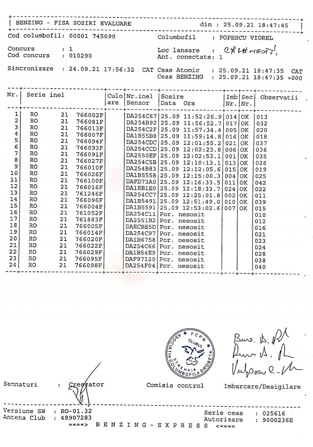 | 24 | Dichis Mirel Ionut | MH978 | Drobeta | [IMB P0] | [DES P0] |