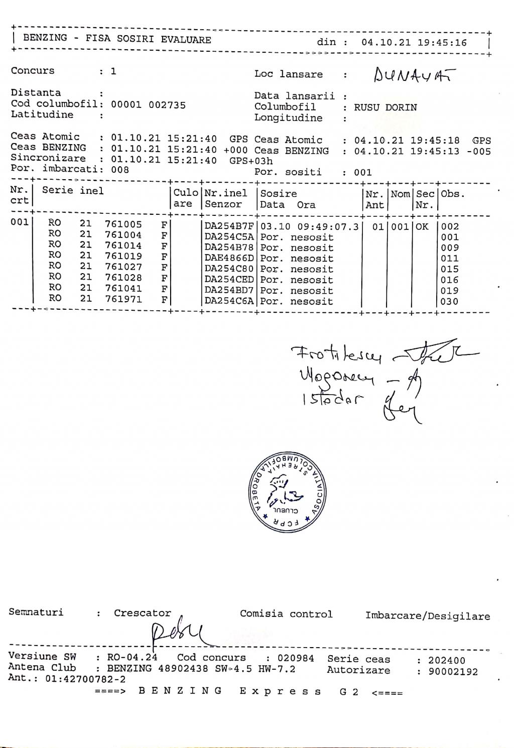 | 72 | Badulescu Costi | MH699 | Strehaia | [IMB P0] | [DES P0] |