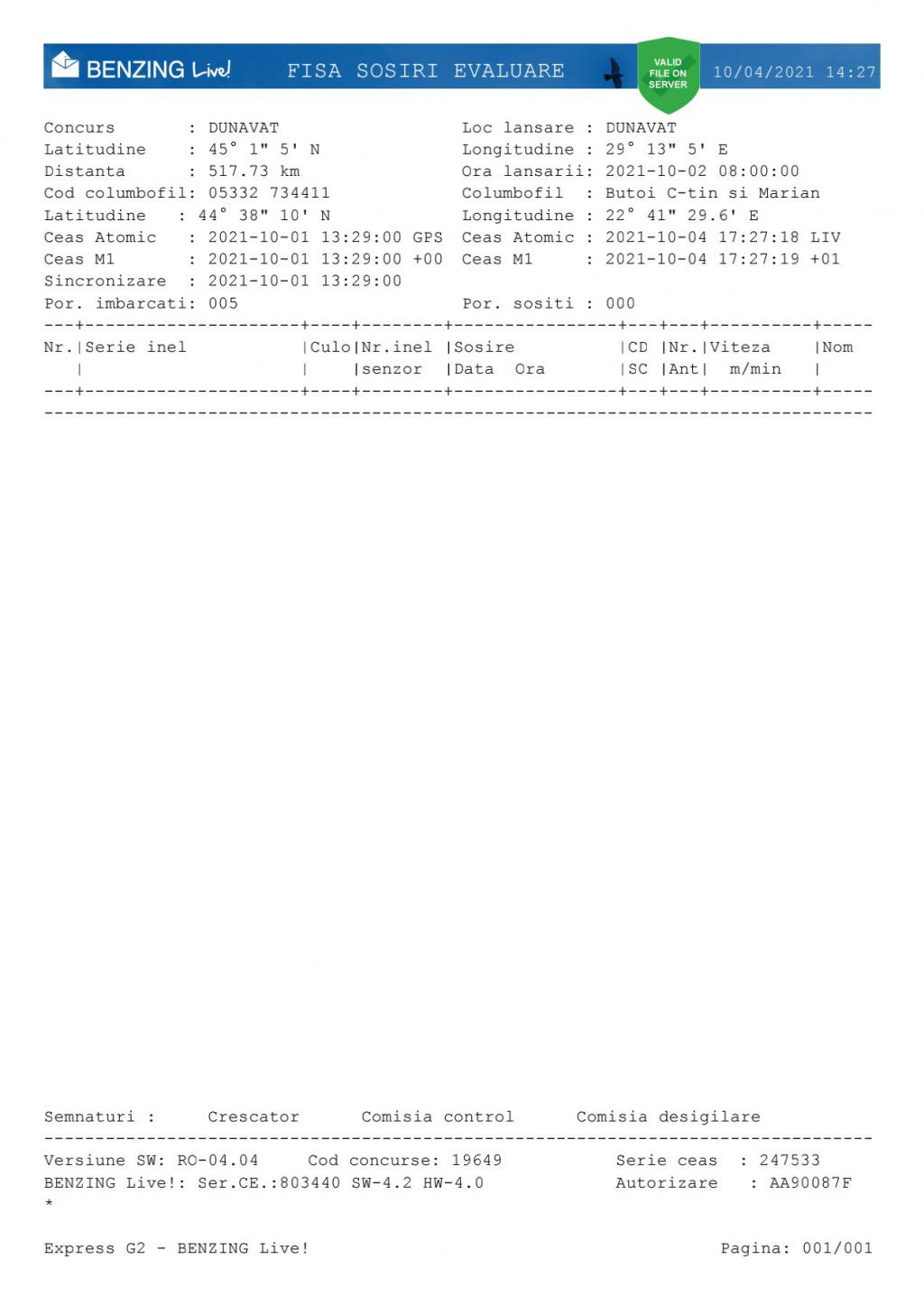 | 1 | Barbulescu Mihai | MH805 | Drobeta | [IMB P0] | [DES P0] |