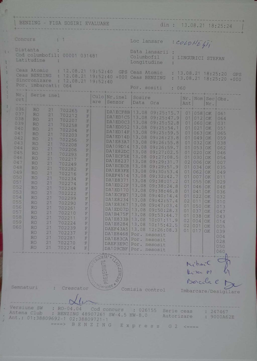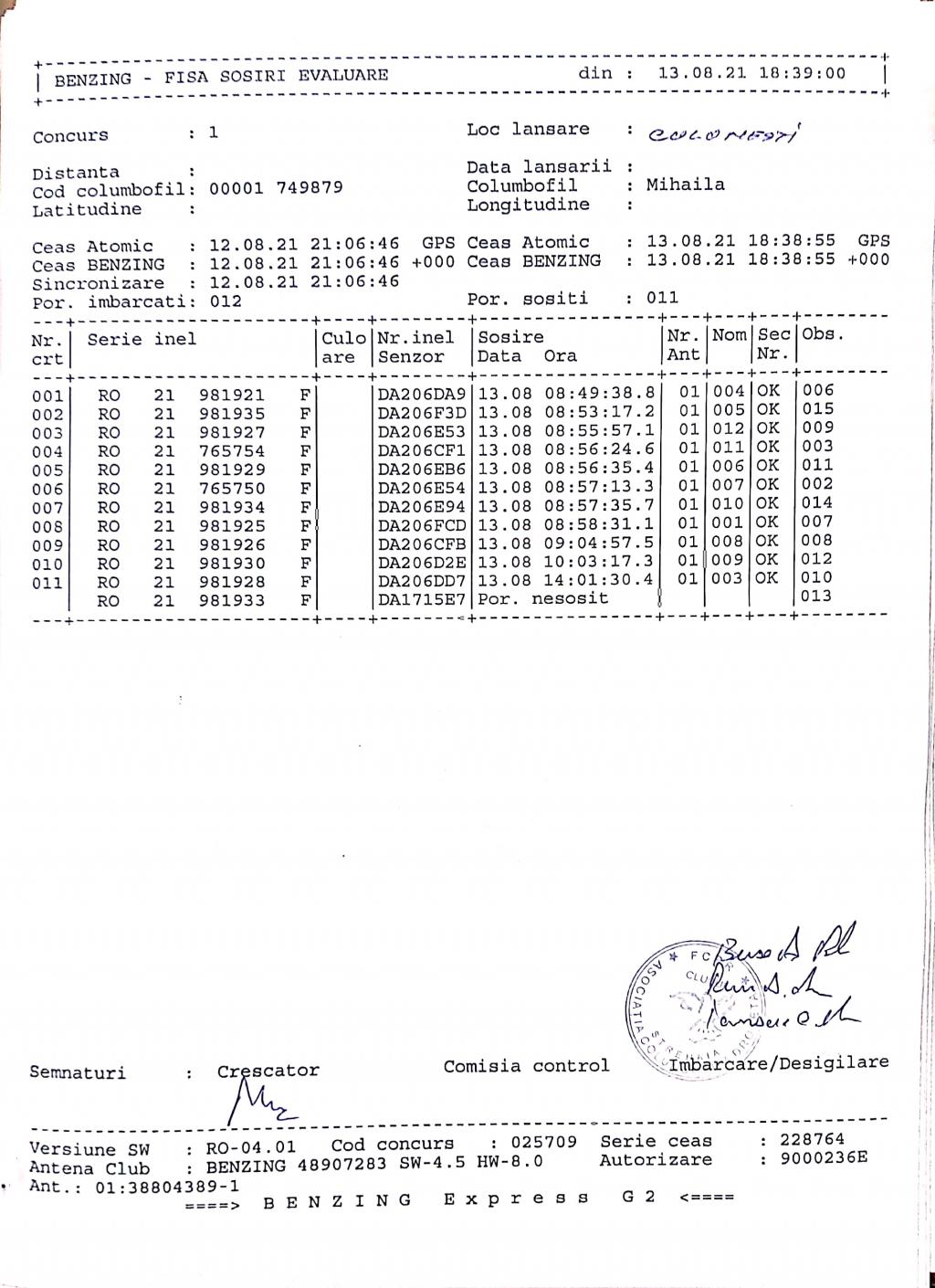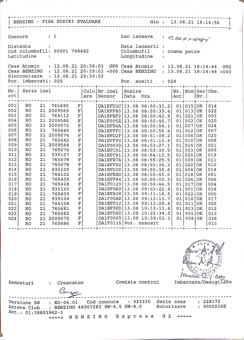 | 85 | Badulescu Costi | MH699 | Strehaia | [IMB P0] [IMB P1] | [DES P0] [DES P1] |