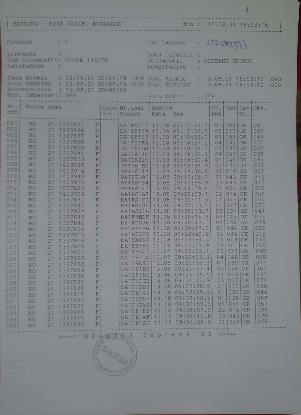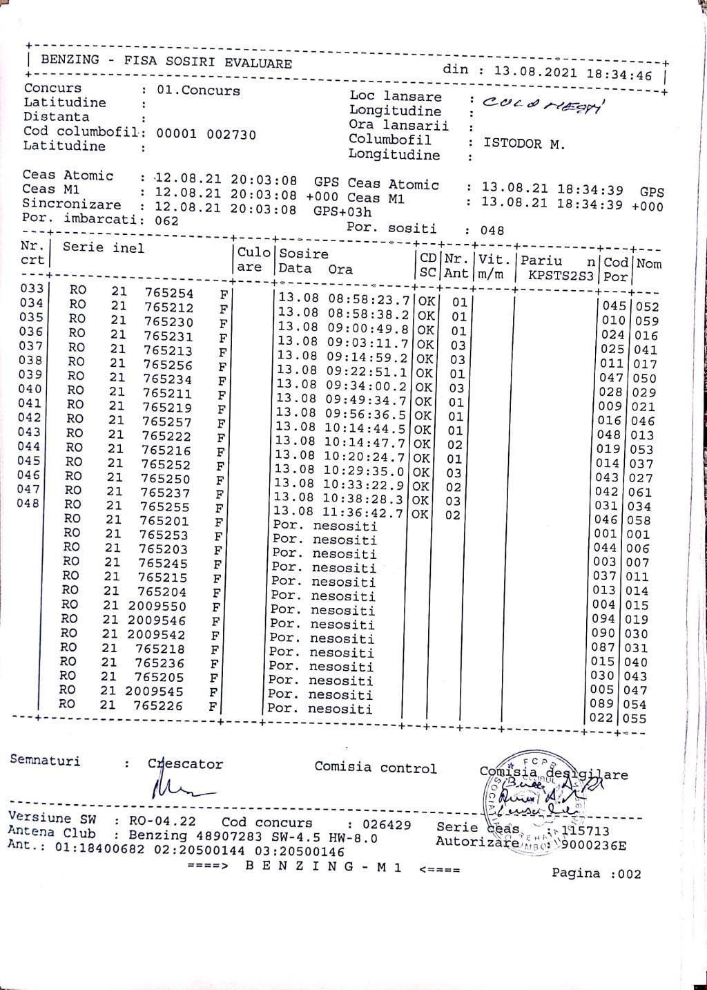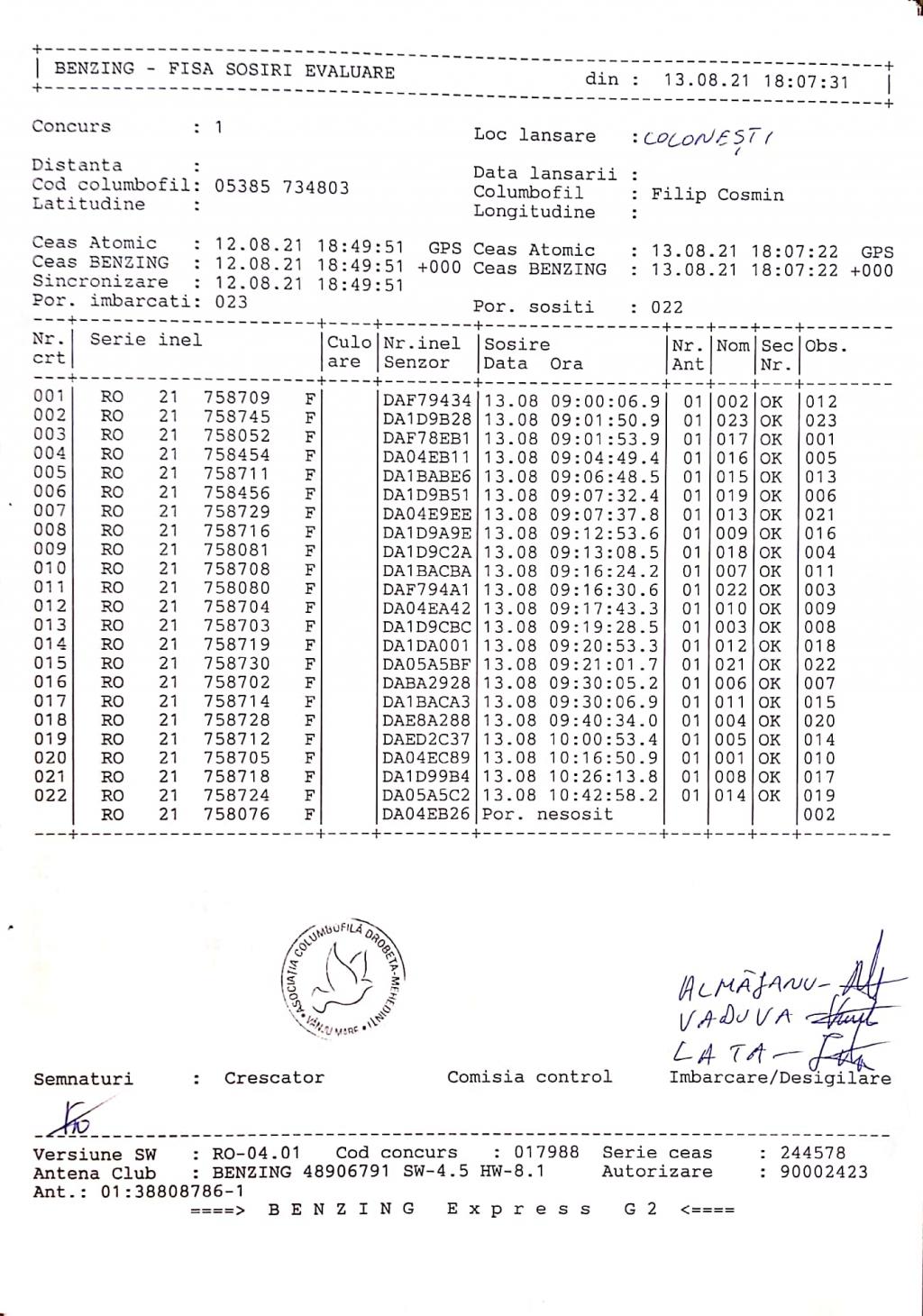 | 85 | Badulescu Costi | MH699 | Strehaia | [IMB P0] [IMB P1] | [DES P0] [DES P1] |