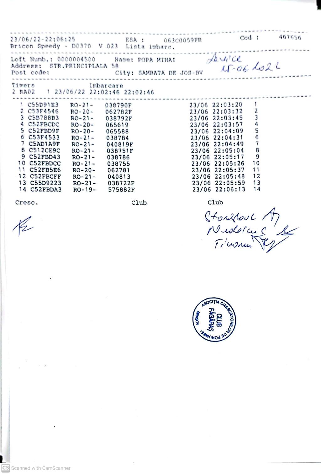 | 239 | Ilinca Ionut Catalin | BV906 | Zarnesti | [IMB P0] | [DES P0] |