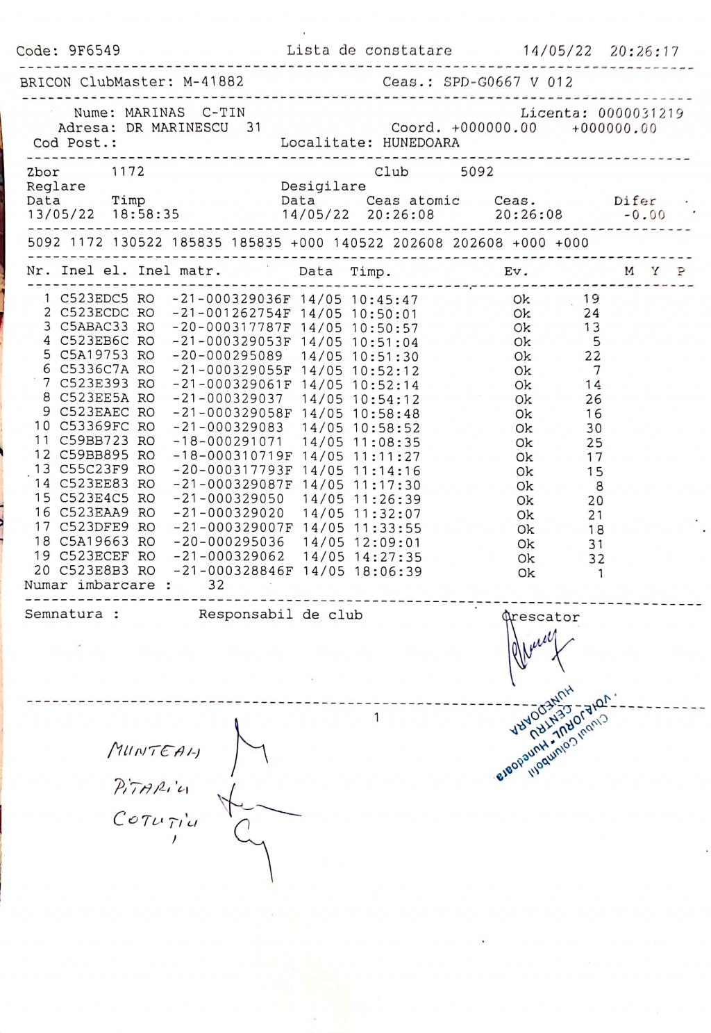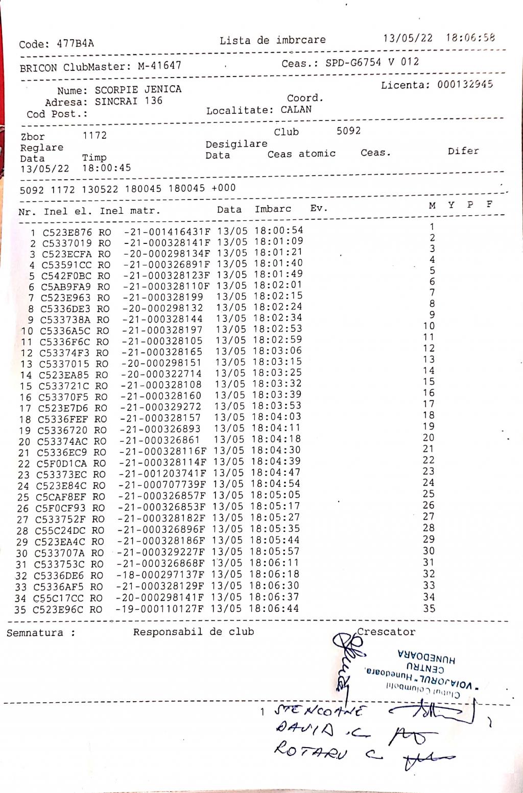 | 34 | Butnariuc Petre | HD826 | Hunedoara | [IMB P0] | [DES P0] |