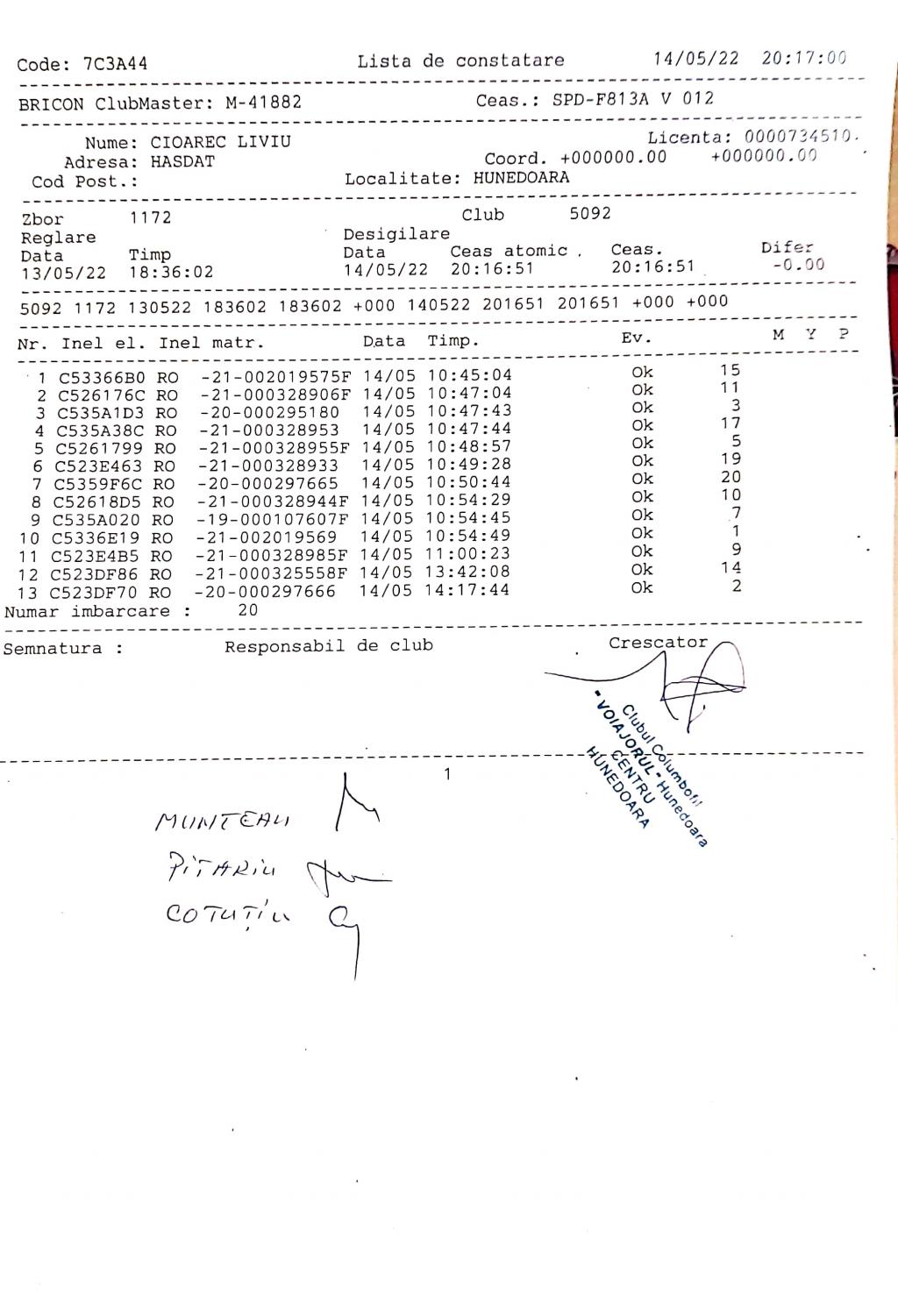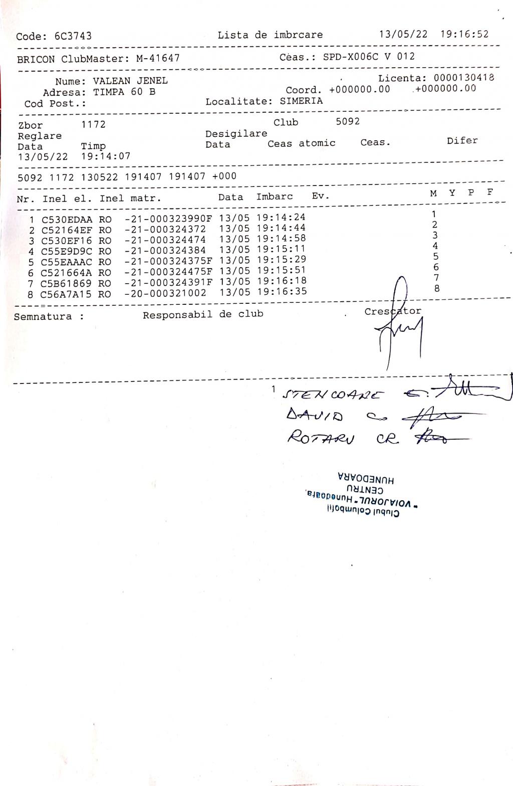 | 100 | Renghea Florin | HD912 | Simeria |