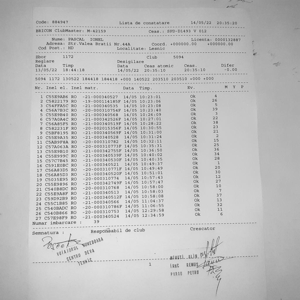 | 33 | Biro Cristian | HD1289 | Hunedoara | [IMB P0] | [DES P0] |